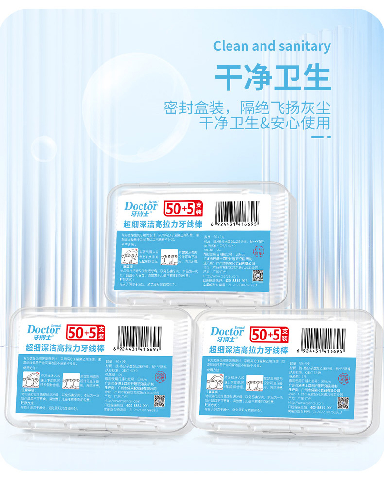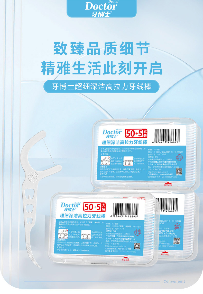 牙博士细滑圆线牙线棒55支*6盒清洁齿缝牙签牙线棒 55支*6盒