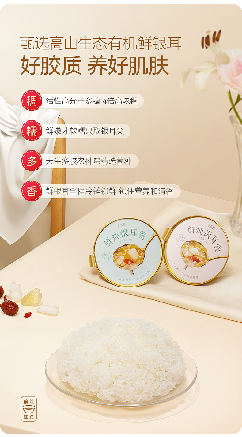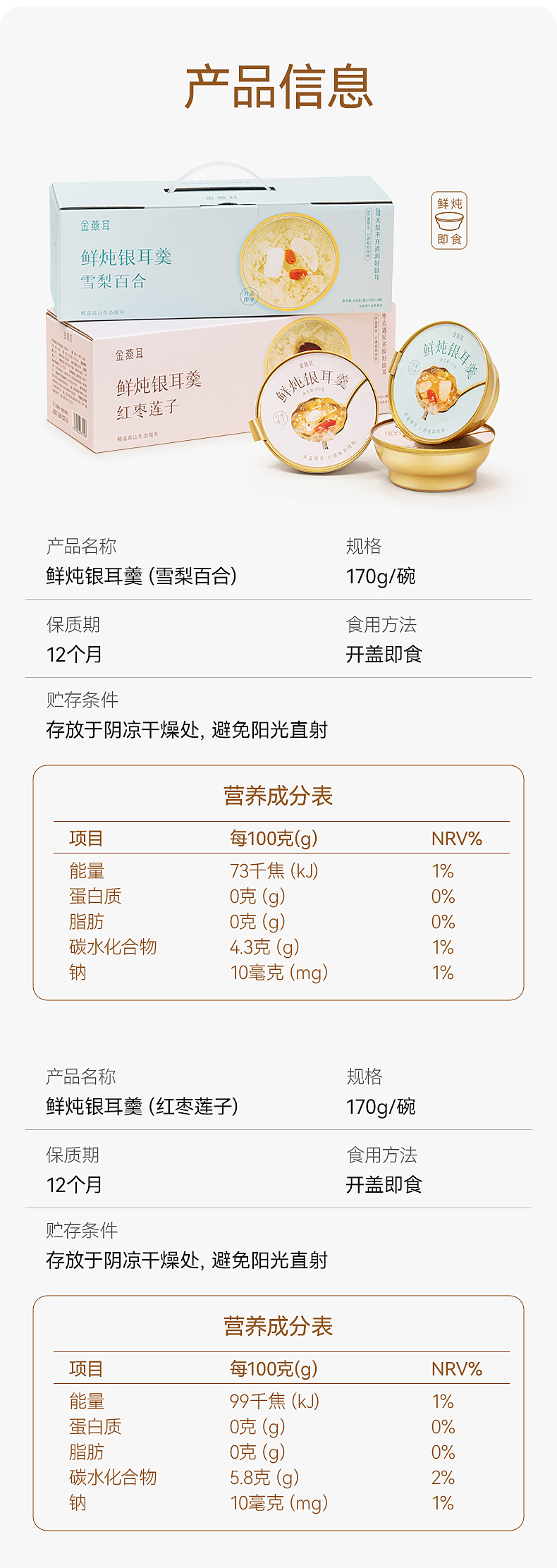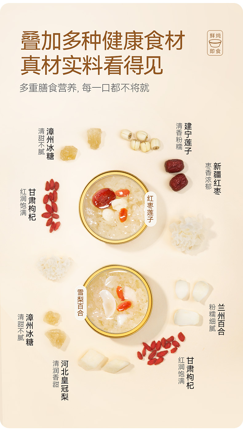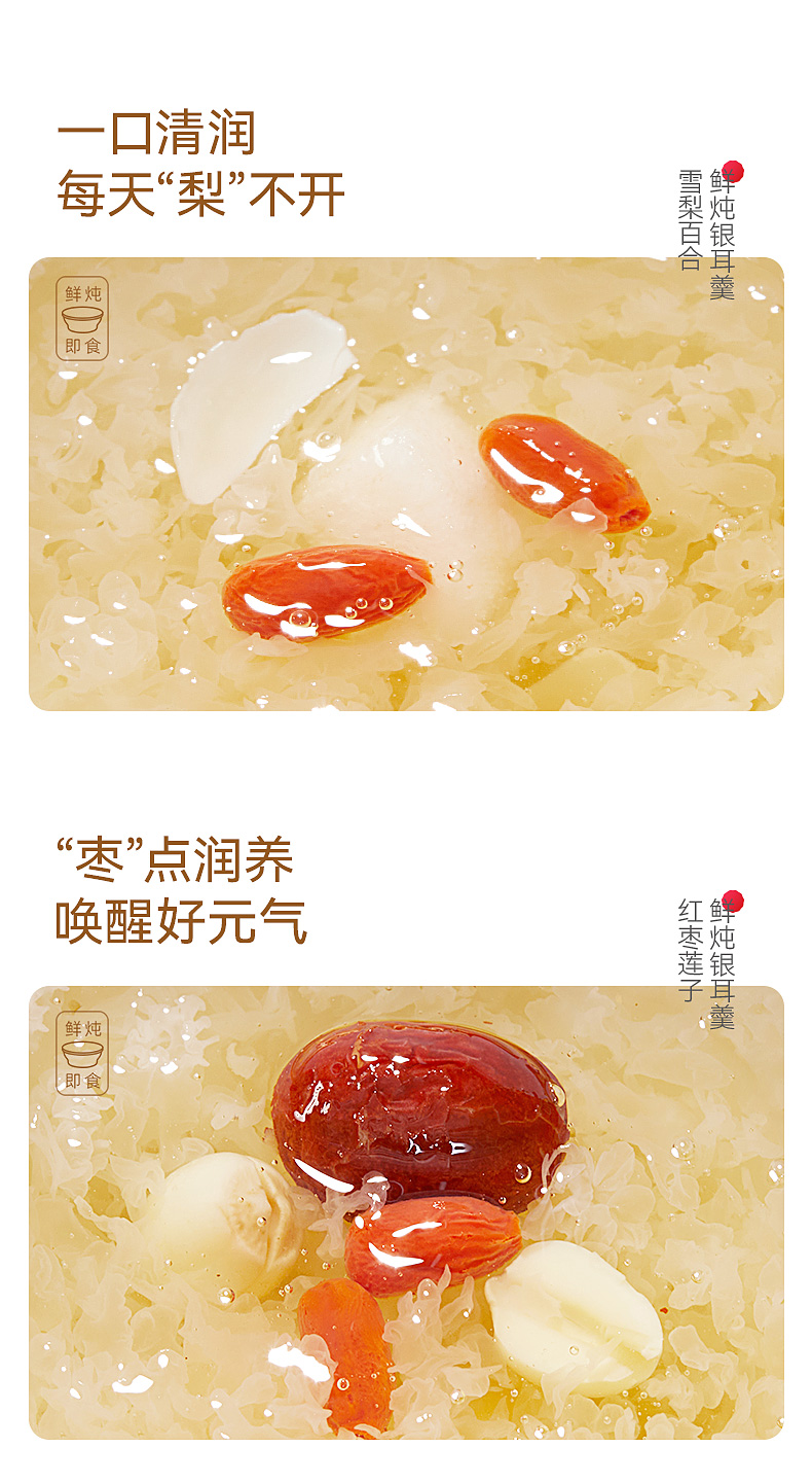 金燕耳红枣莲子鲜炖银耳羹6碗/盒+雪梨百合鲜炖银耳羹6碗/盒