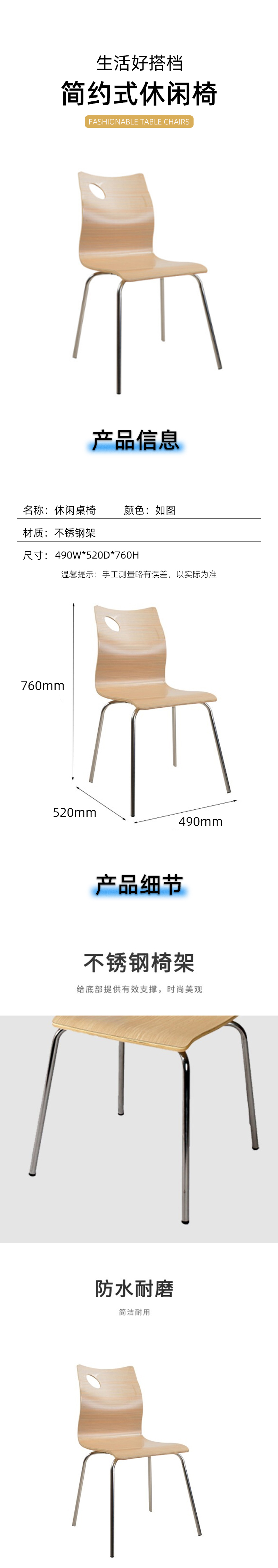 荣美盛 简约现代餐桌椅现代家具靠背椅写字椅 张 490W*520D*760H