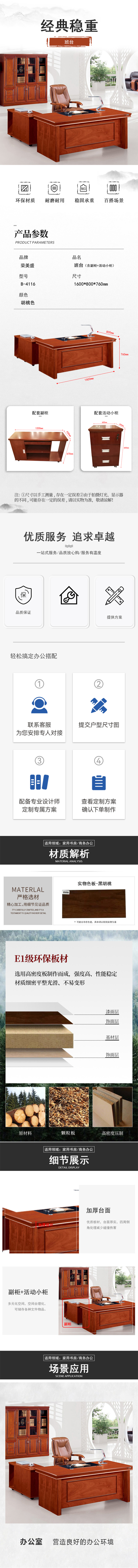 荣美盛 办公班台桌 张 1600W*800D*760H
