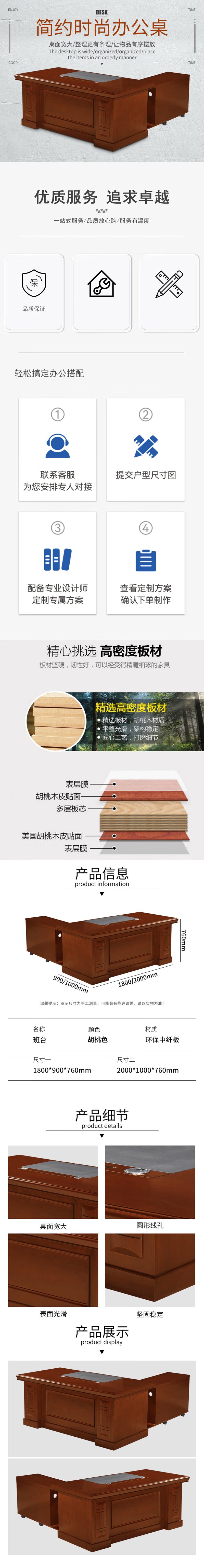 荣美盛 老板桌油漆桌班台 张 2000W*1000D*760H