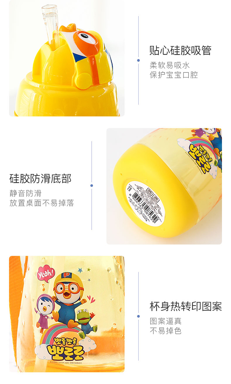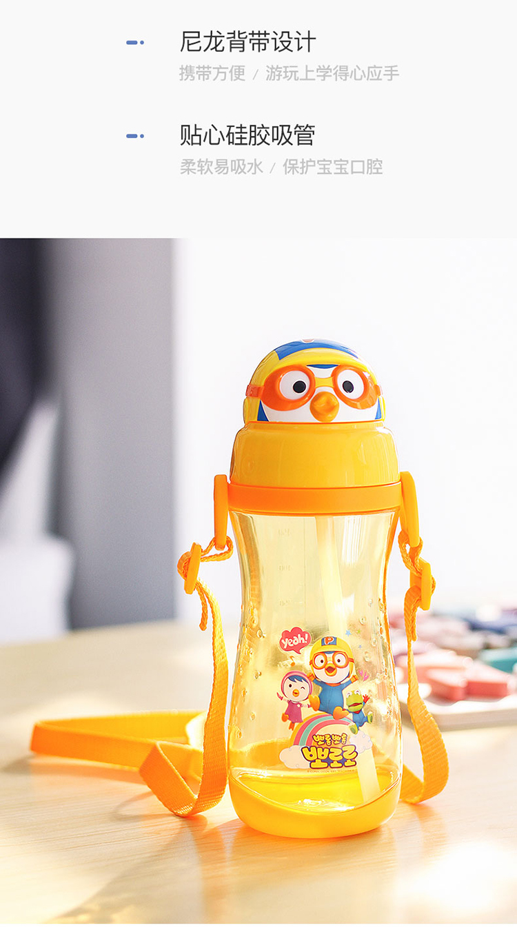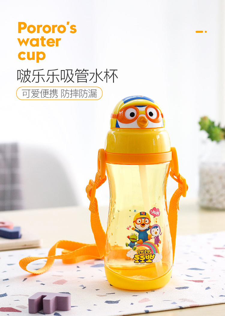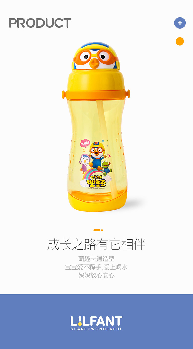 LILFANT利房 啵乐乐甜蜜蜜背带立体吸管水杯PR8562(590ml) 黄色
