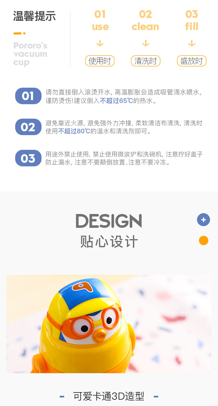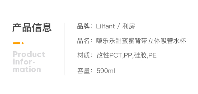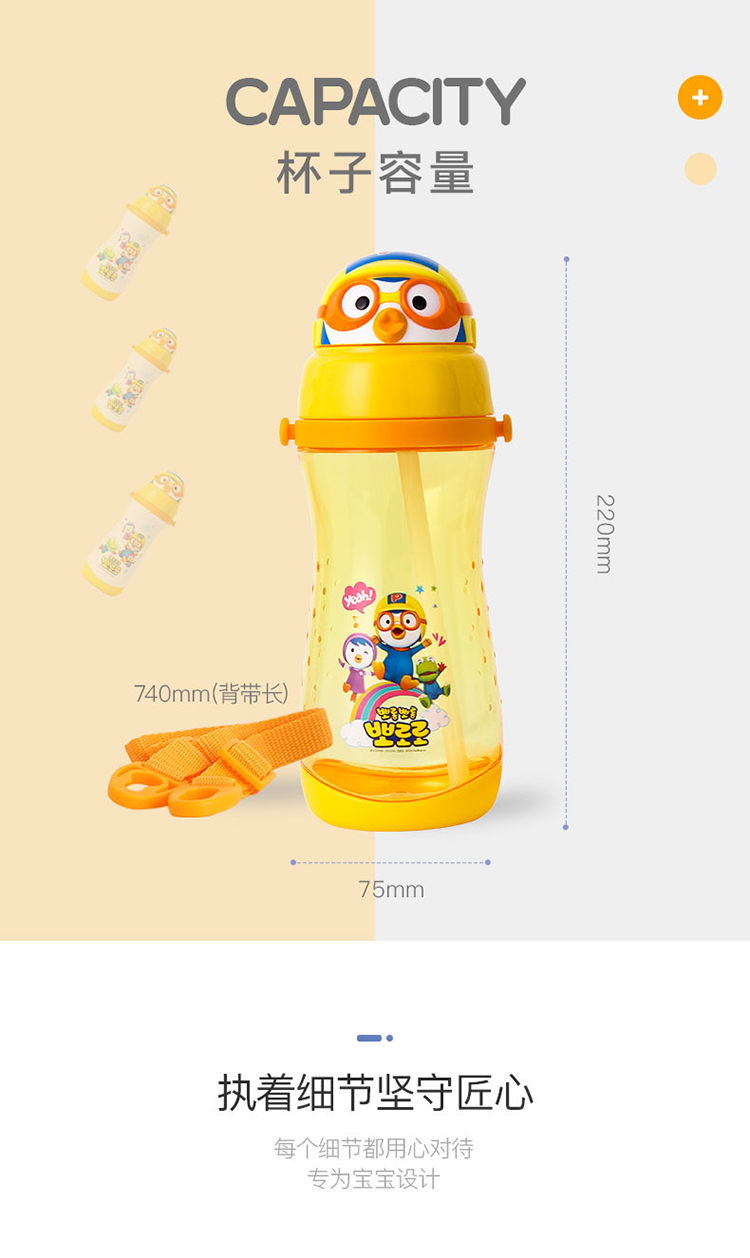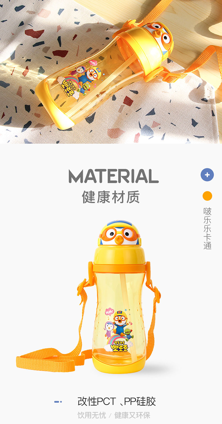 LILFANT利房 啵乐乐甜蜜蜜背带立体吸管水杯PR8562(590ml) 黄色