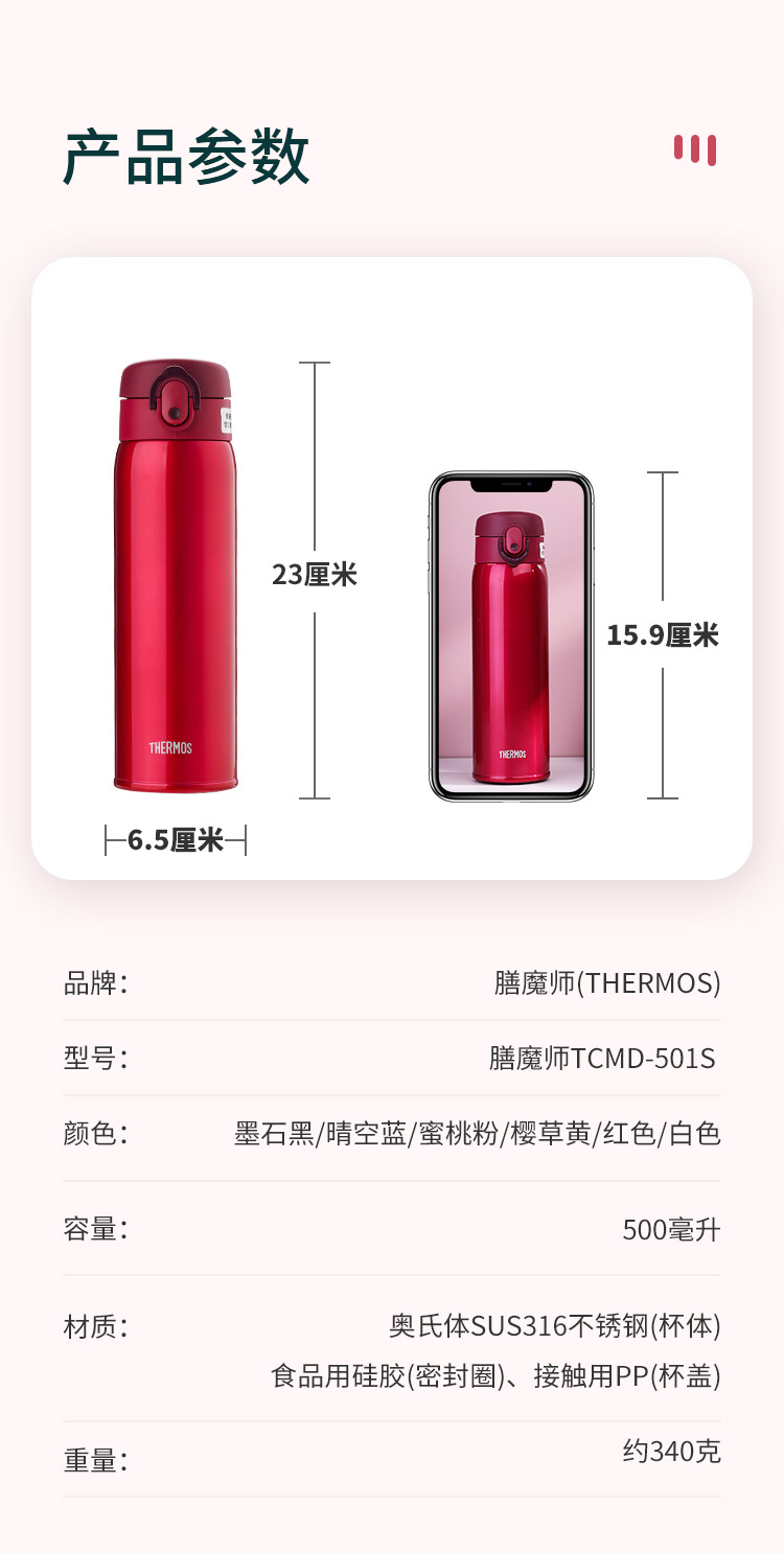 THERMOS膳魔师500ml高真空直身保冷保温杯TCMD-501S(单位:个) 红色