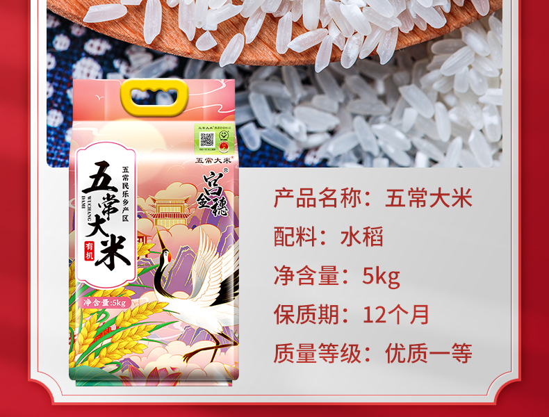 宫金穗有机大米稻花香2号五常大米新米5kg(单位:袋)
