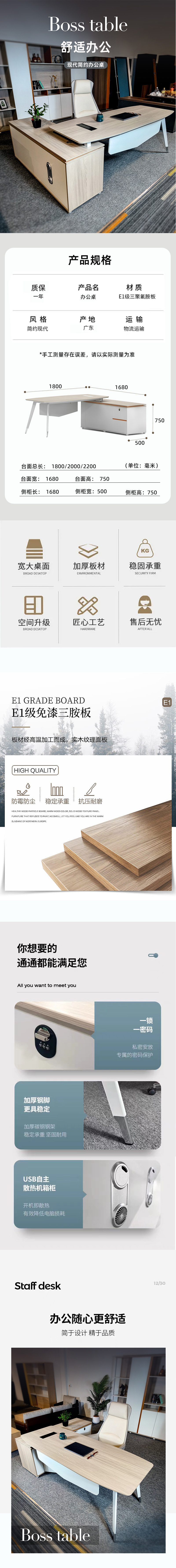 荣美盛 老板桌经理桌主管桌简约班台桌板式办公桌 张 2000*1680*750mm