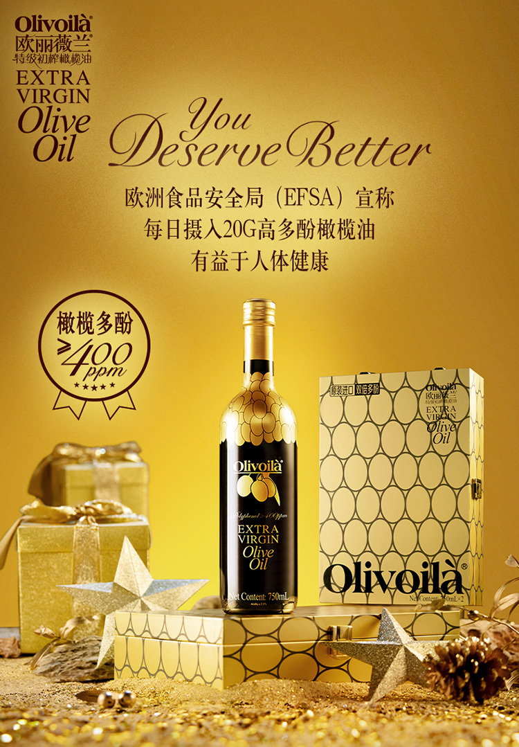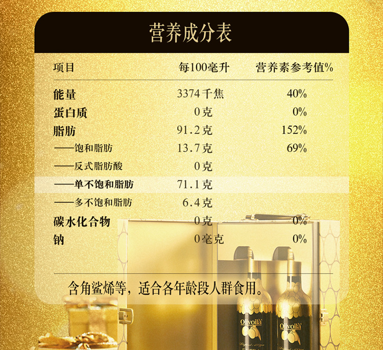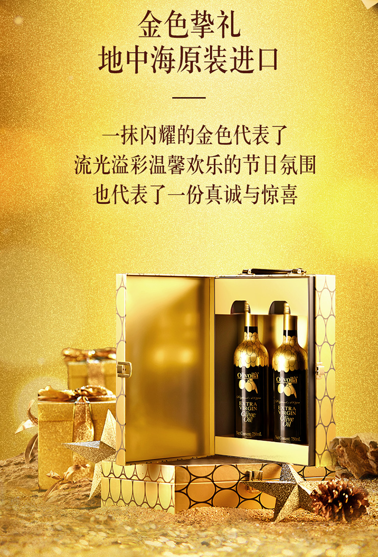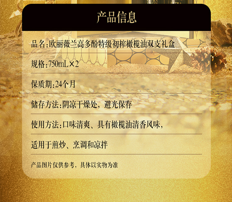 欧丽薇兰高多酚特级初榨橄榄油礼盒750ML*2(单位:盒) 金色