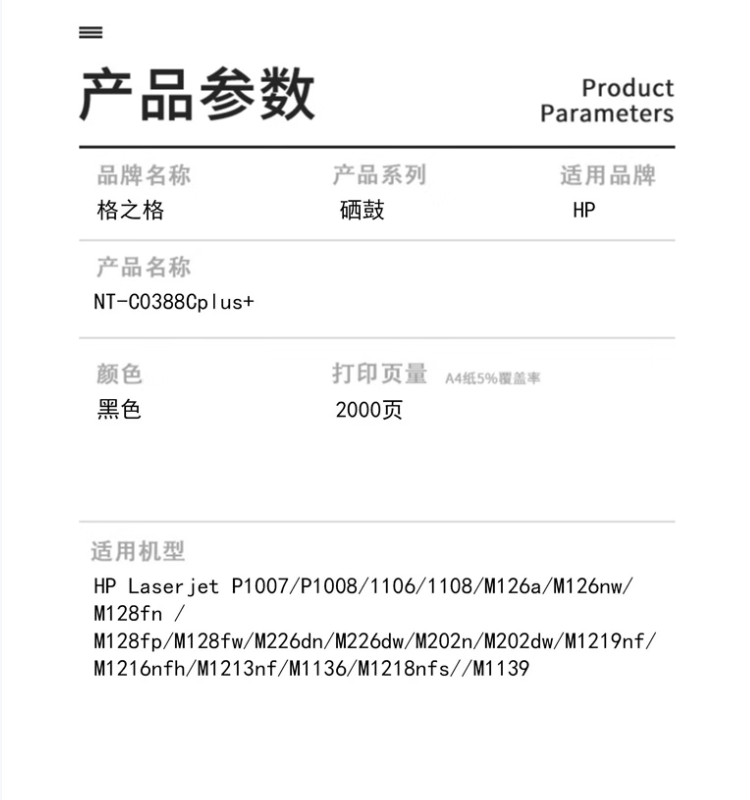 格之格 NT-C0388Cplus 2000页 硒鼓 黑色(单位:支)