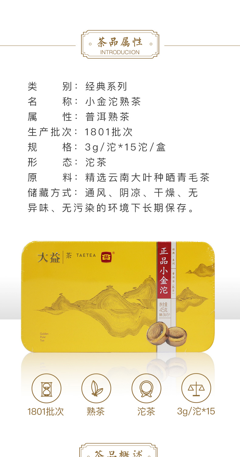 大益45g正品小金沱(熟)(单位:盒) 无色