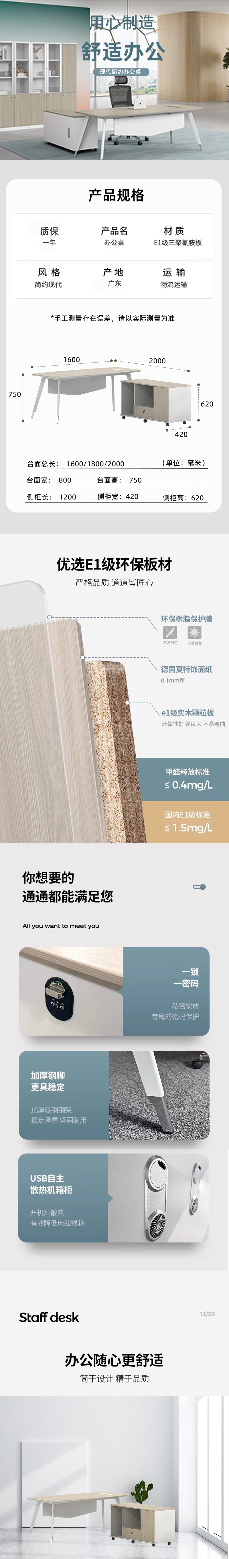 荣美盛 办公家具老板桌经理桌主管桌简约班台桌板式办公桌 张 1800*800*750mm