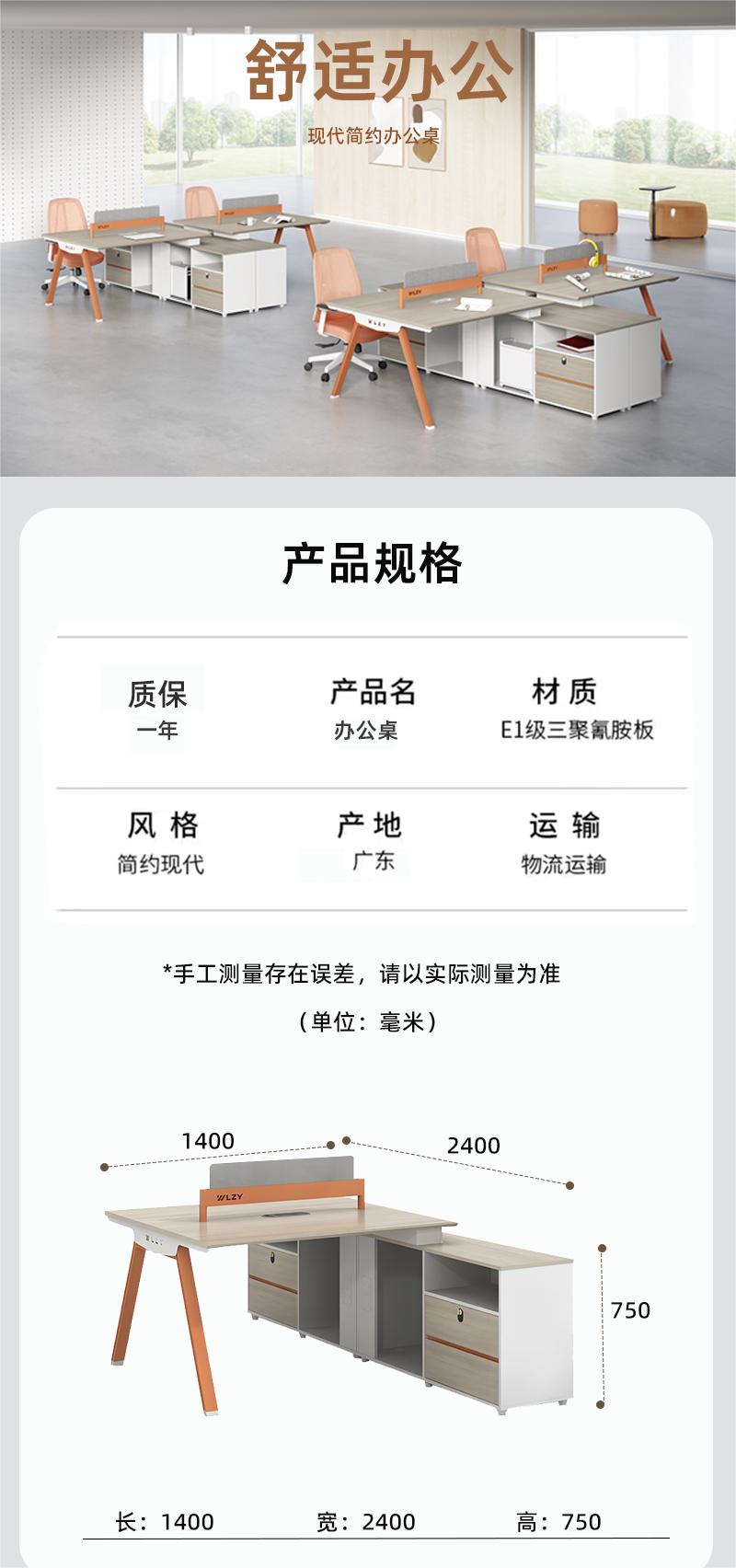荣美盛 办公家具简约板式办公桌双人位1400*2400*750 mm 张 白色