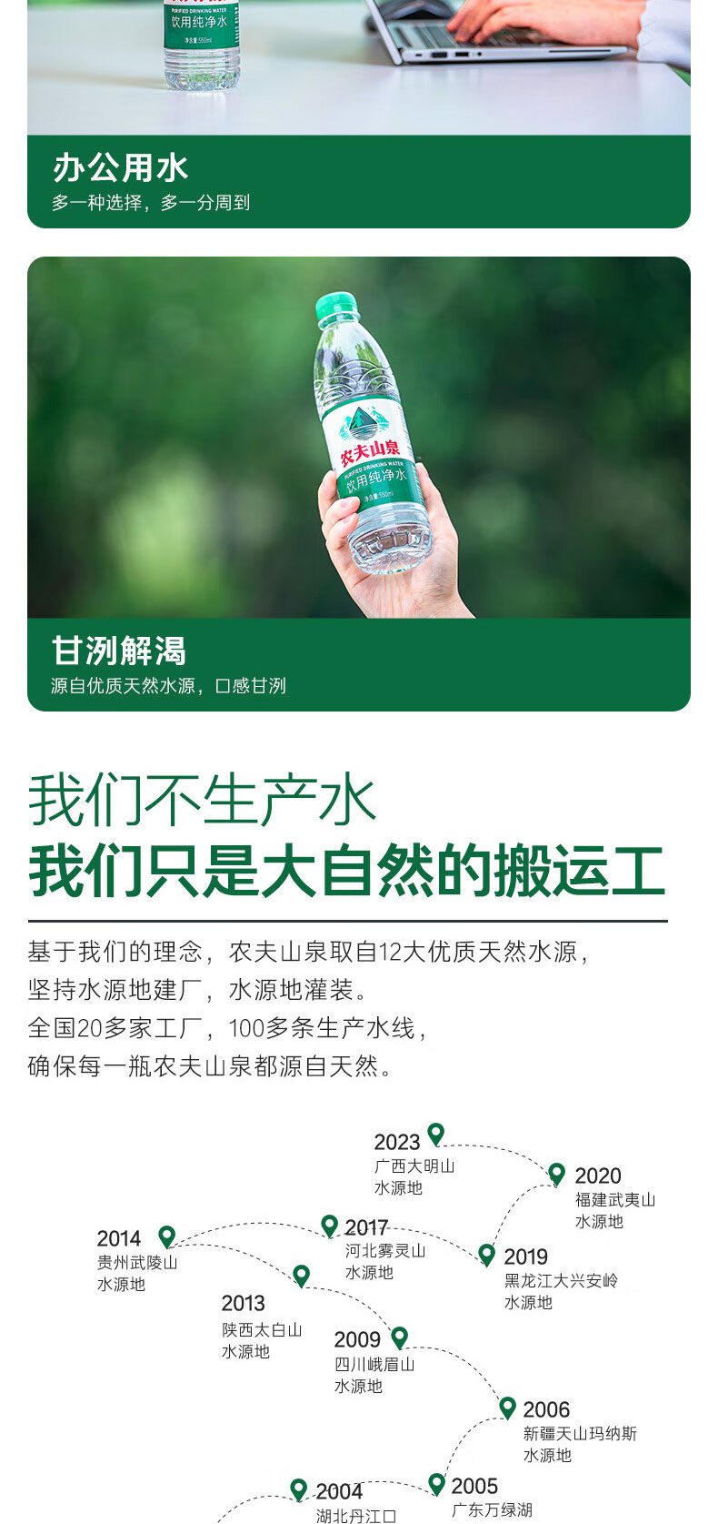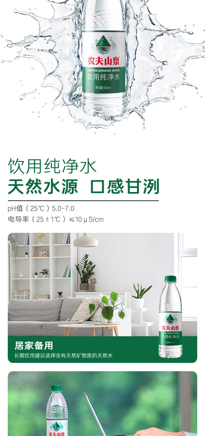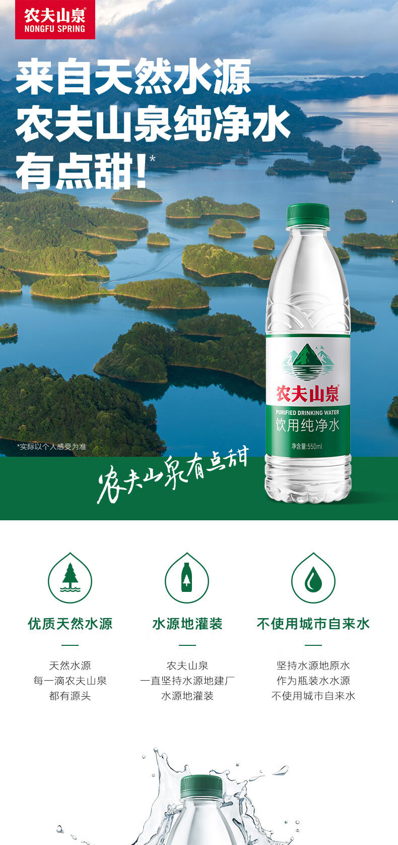 农夫山泉 饮用纯净水 550ml*24瓶 整提装 绿色