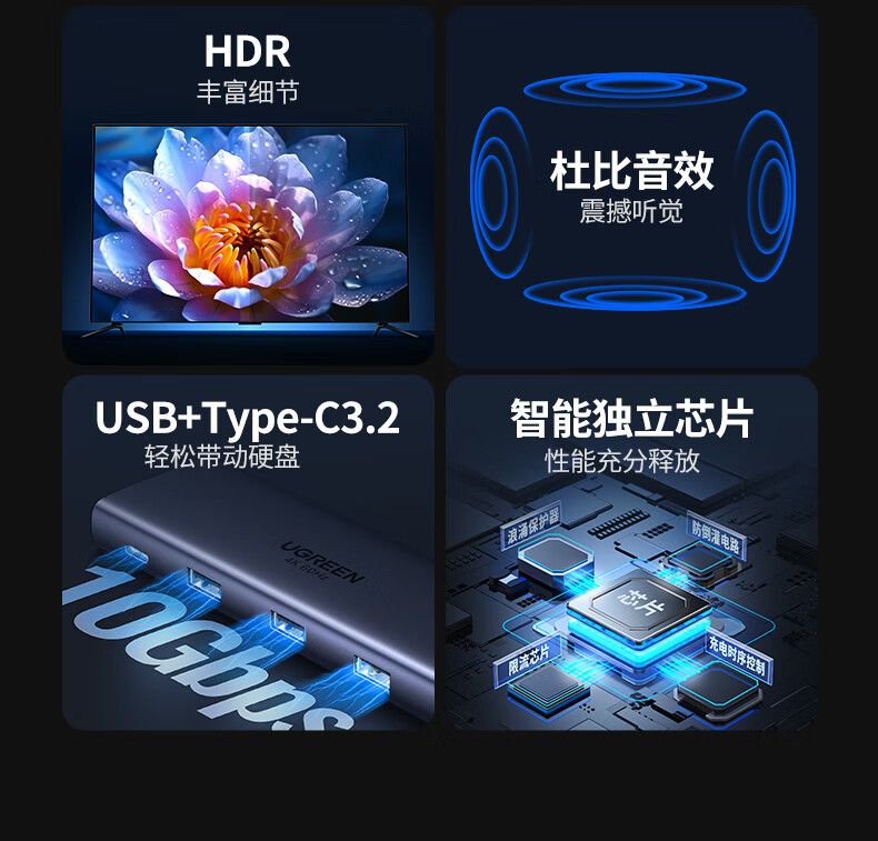 绿联(UGREEN)Type-C扩展坞45031单位:个 深空灰