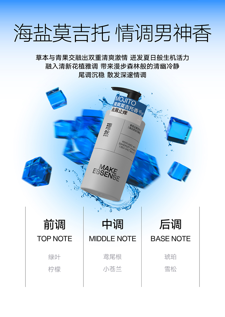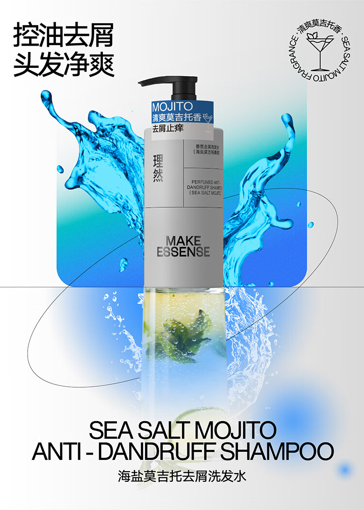 理然 男士海盐去屑洗发水 止痒控油洗发露洗头膏400ml(单位:瓶) 莫吉托香型 400ml