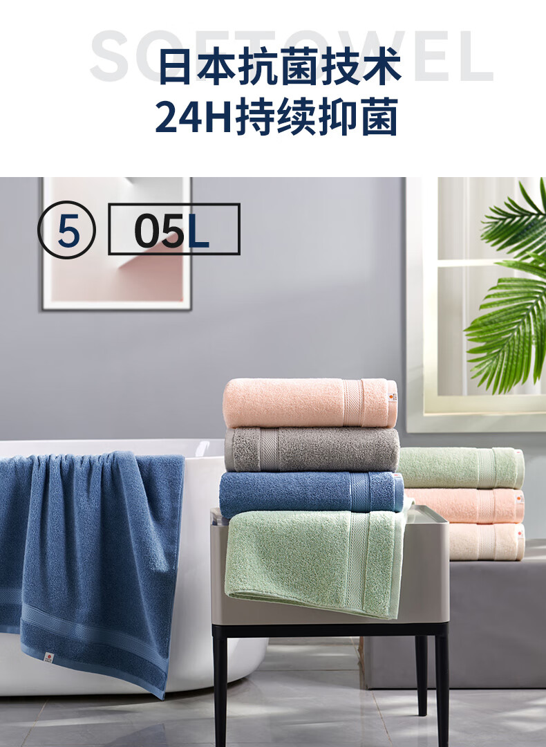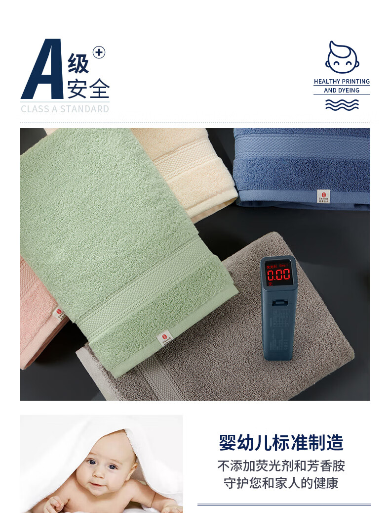 孚日洁玉 A类禁荧光纯棉抑菌浴巾 加厚加大超柔纱成人儿童通用洗澡巾 DS0-128B-SJ 条 绿色