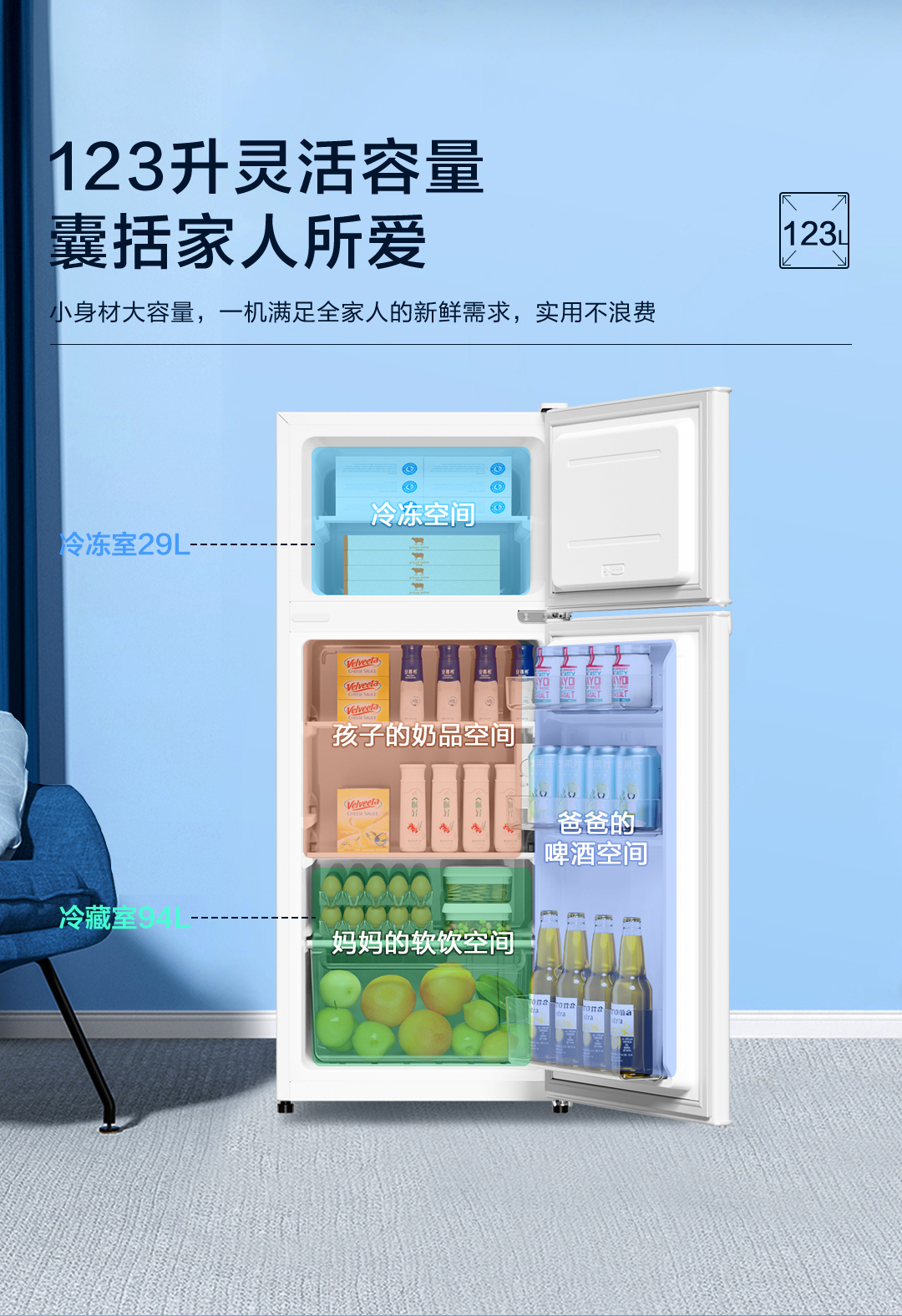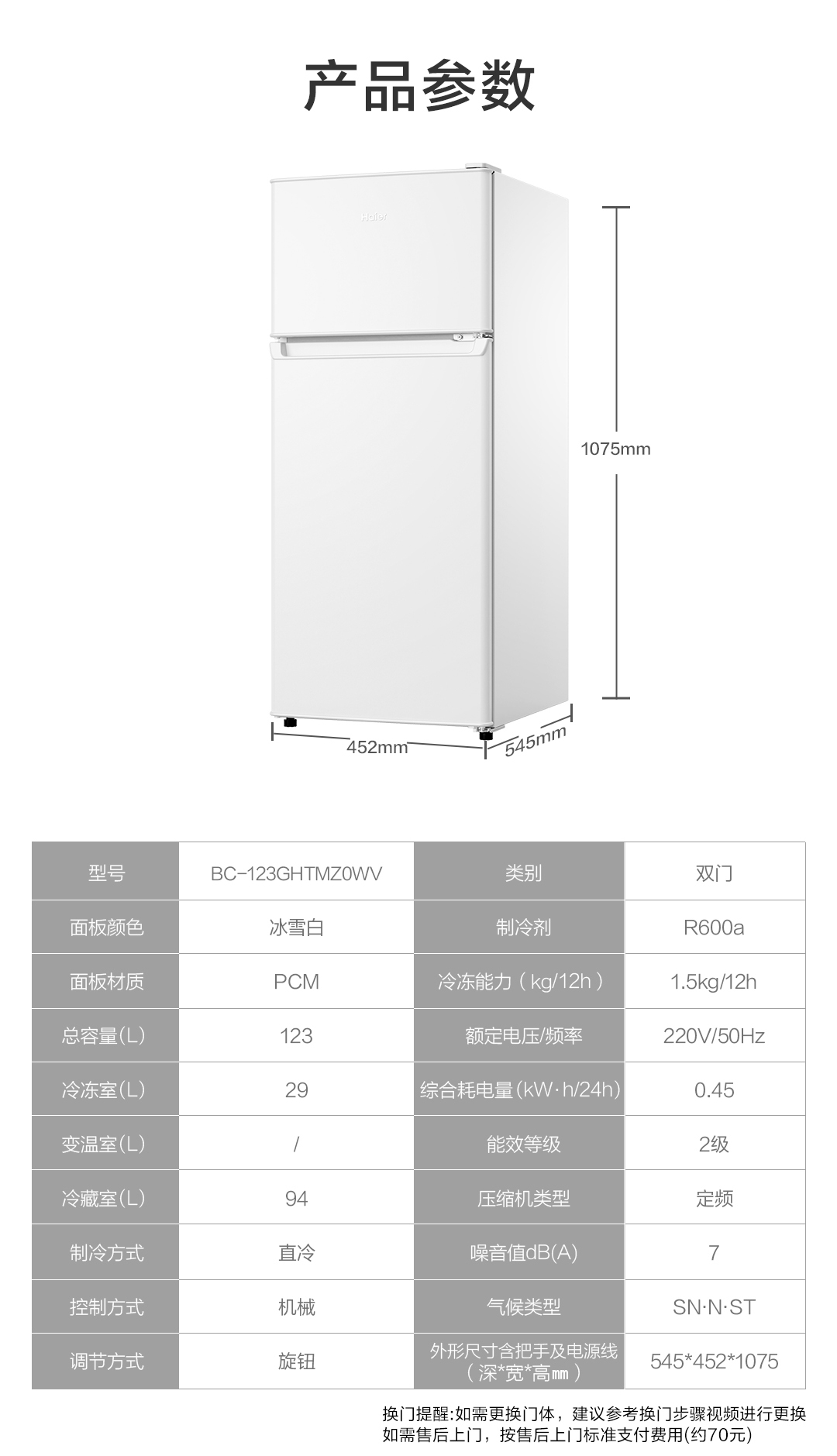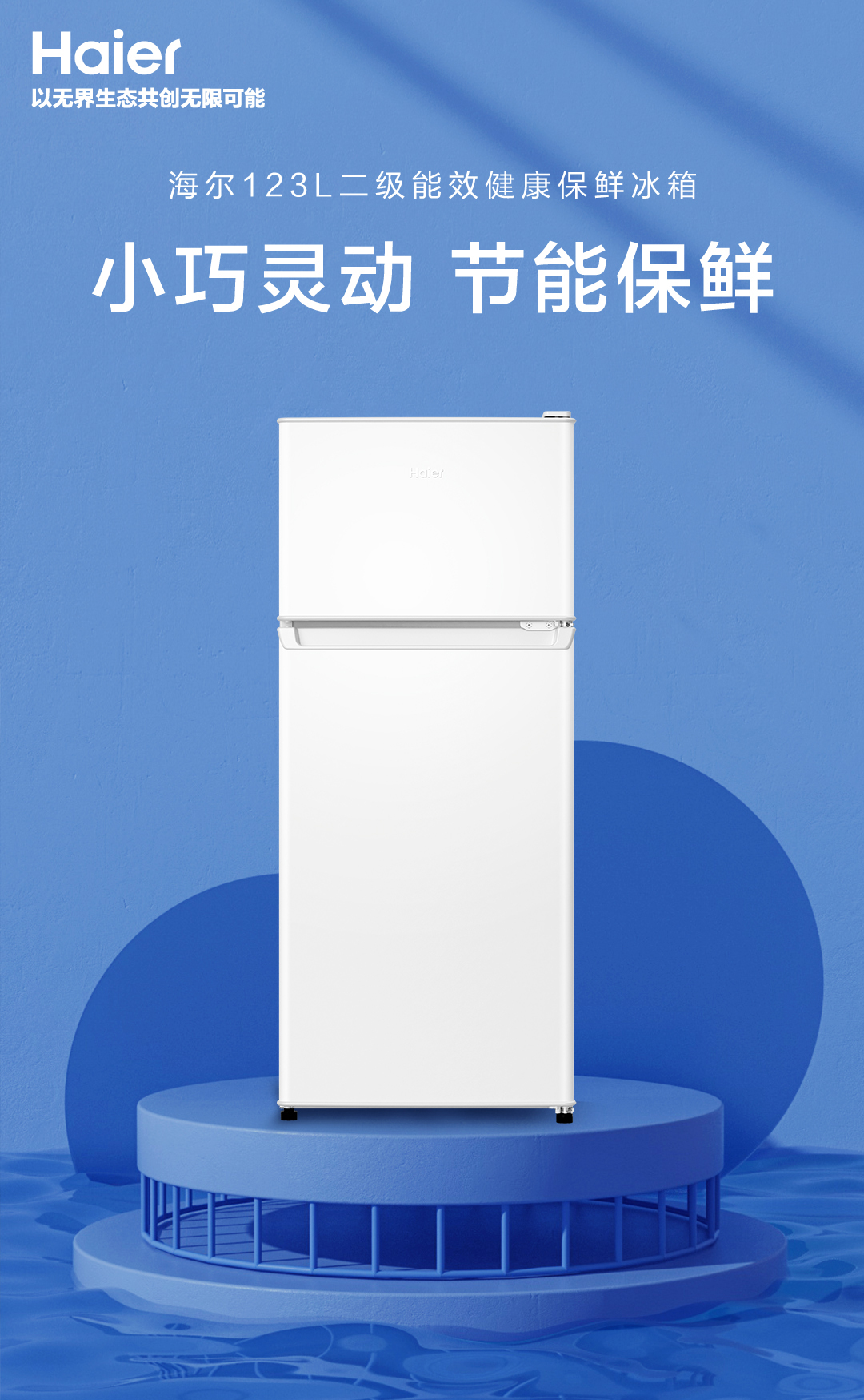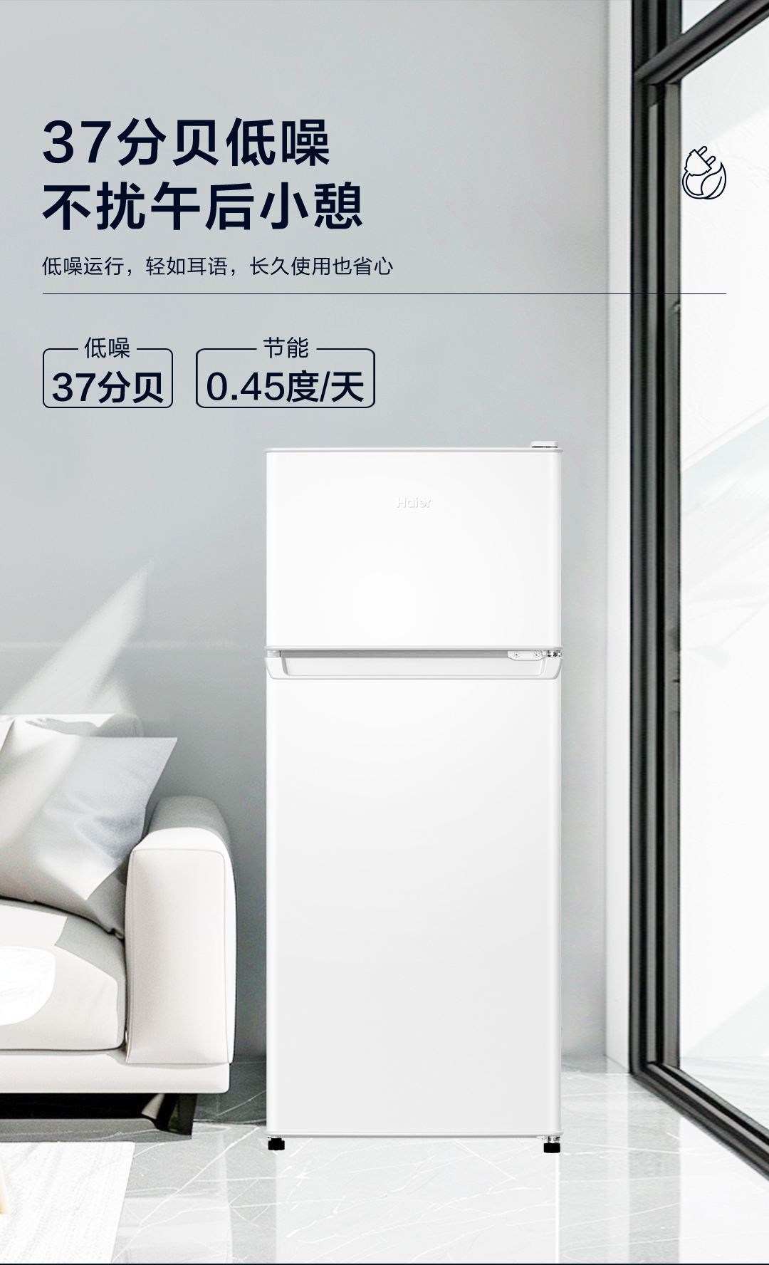 海尔(Haier)BCD-123GHTMZ0WV 冰箱双门123升节能直冷独立式定频二级能效单位:台 白色