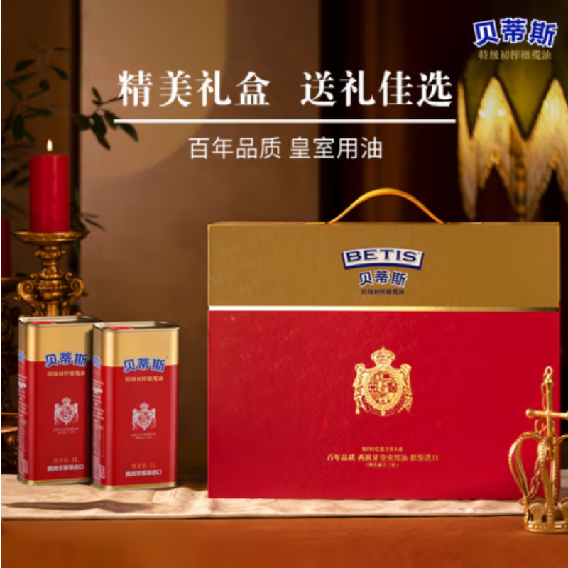 贝蒂斯 食用油 特级初榨橄榄油1L*2礼盒(单位:盒) 红色