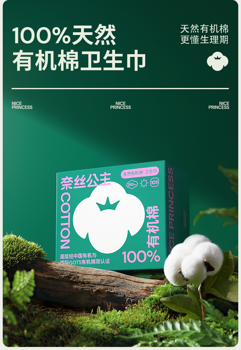 全棉时代奈丝公主100%有机棉系列卫生巾290mm,9片/盒(单位:盒) 深蓝色