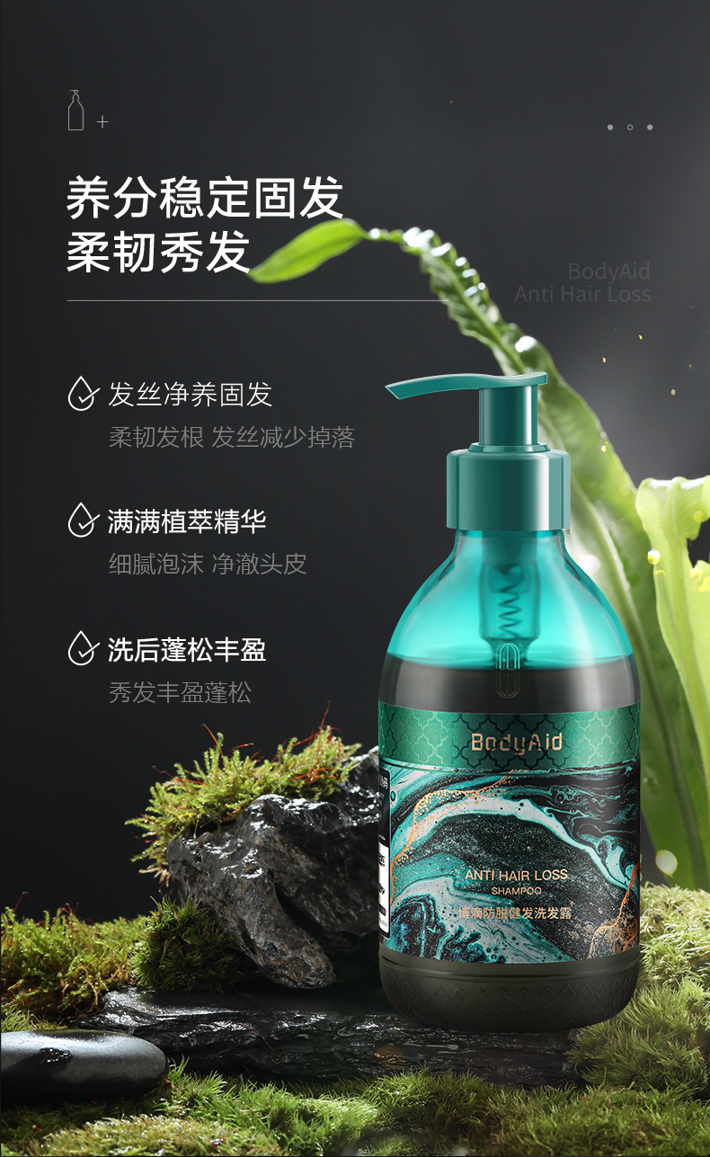 BodyAid(博滴)苗坚防脱育发洗发水 300ml 单位:瓶 绿色 390g