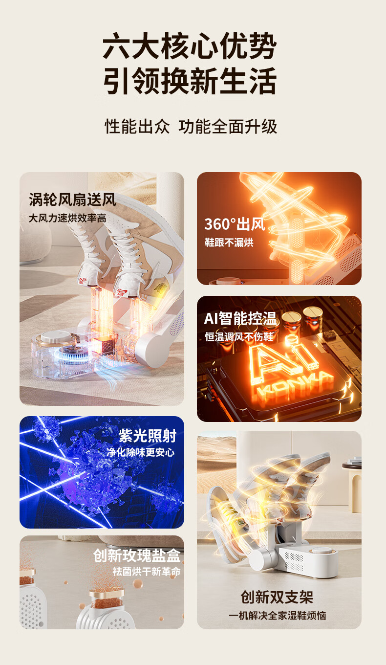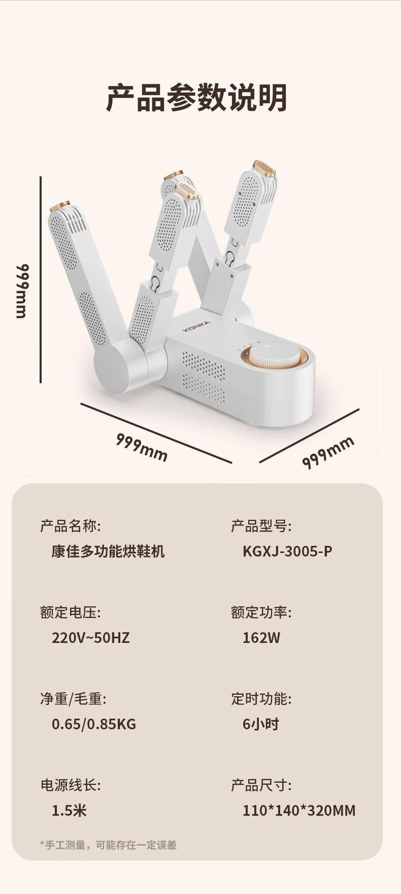 康佳(KONKA)杀菌除臭干湿两用全自动烘烤烘鞋器(单位:台)KGXJ-3005-P-H 本白色