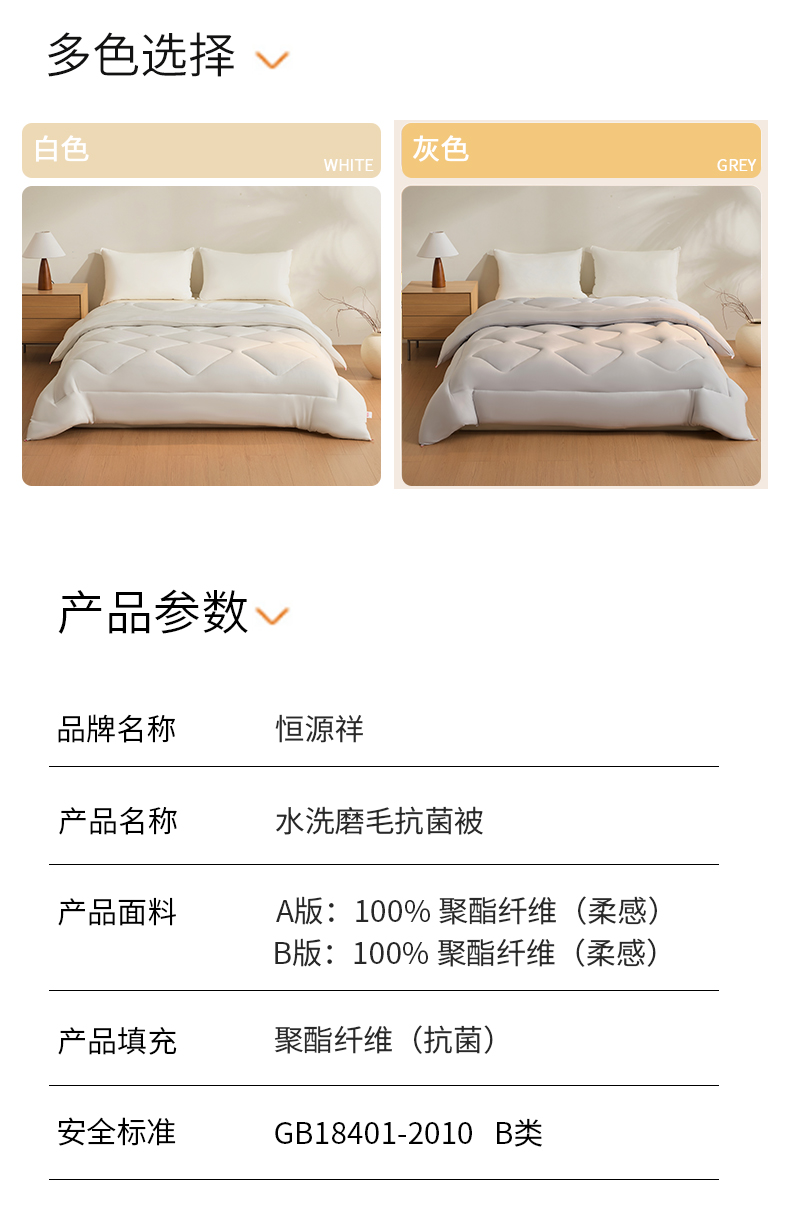 恒源祥 抗菌磨毛 200*230cm 冬被 200*230cm 浅灰(单位:床)