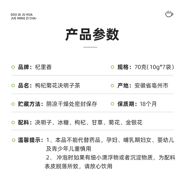 杞里香盒装枸杞菊花决明子茶70g*1盒 雾雨绿