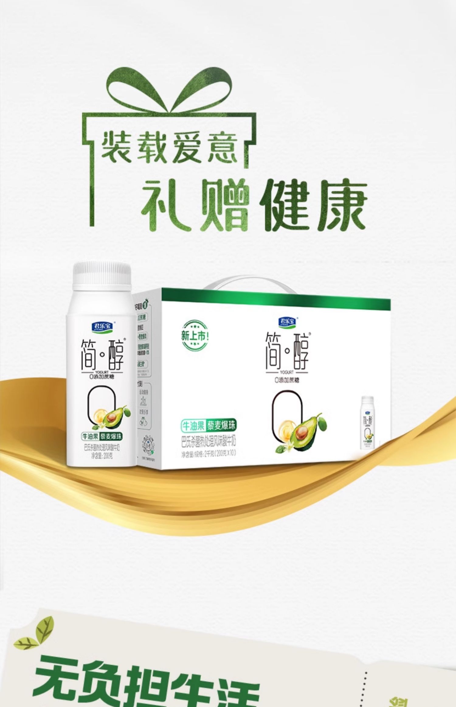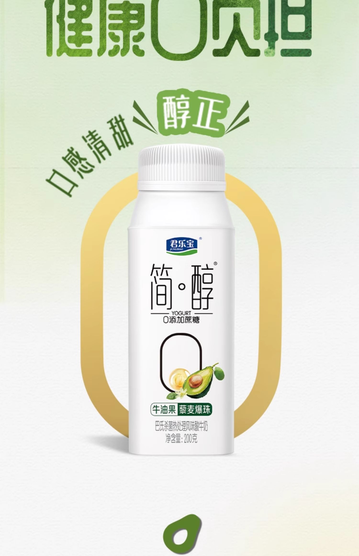 君乐宝(JUNLEBAO)简醇0添加蔗糖牛油果冠200ml*10单位:箱 本白色