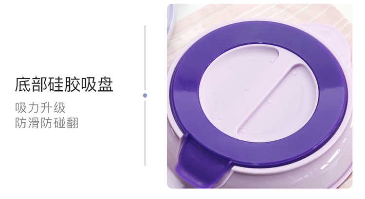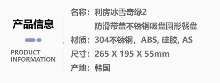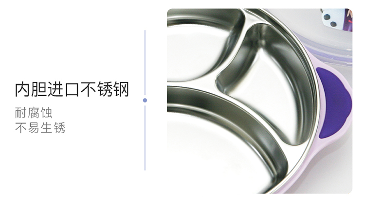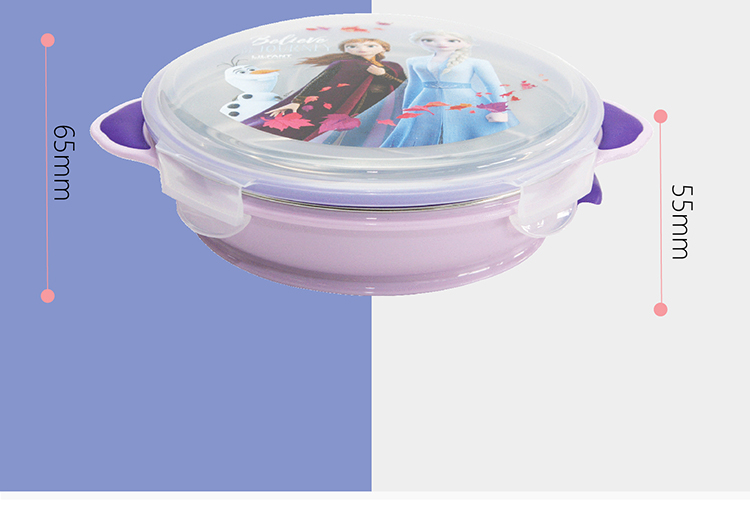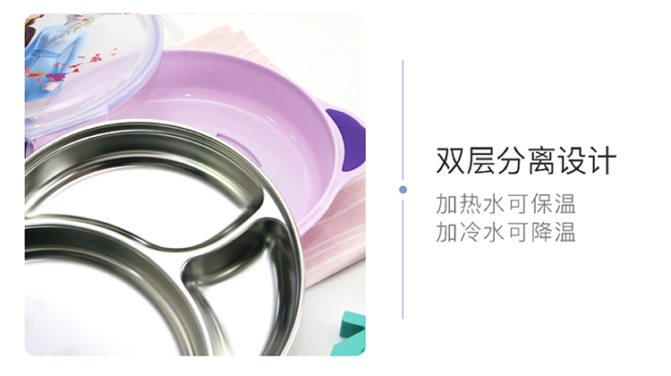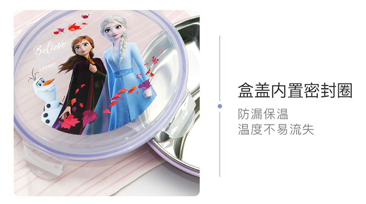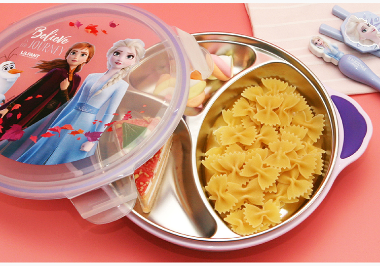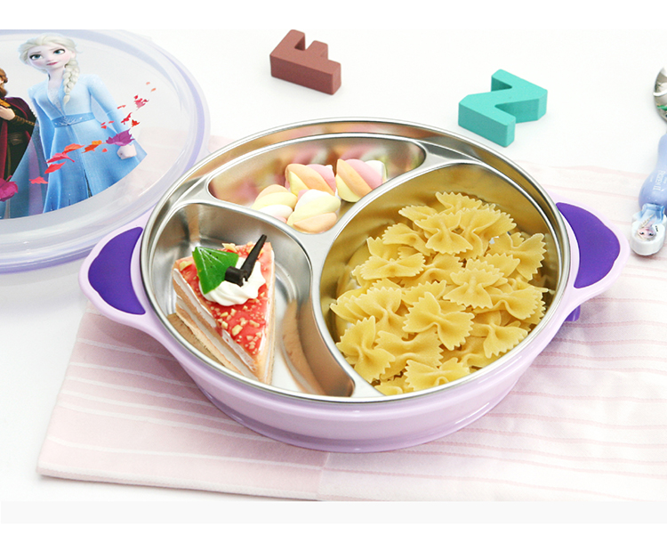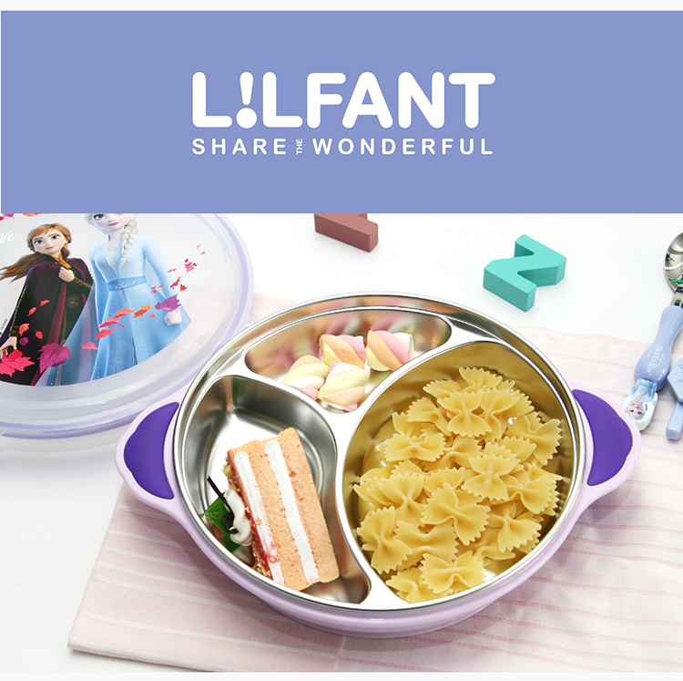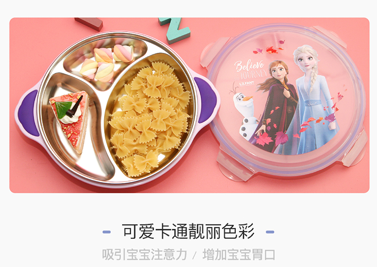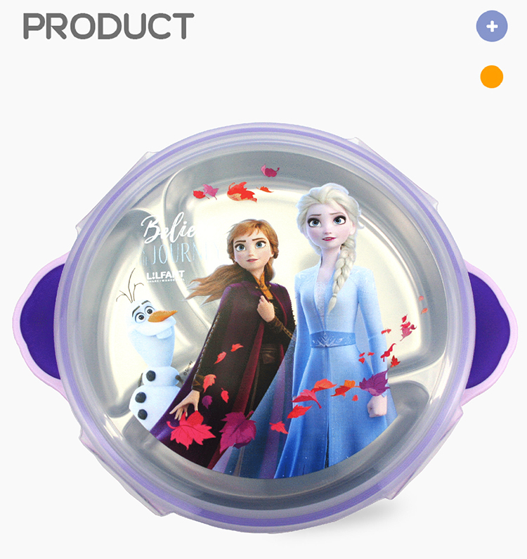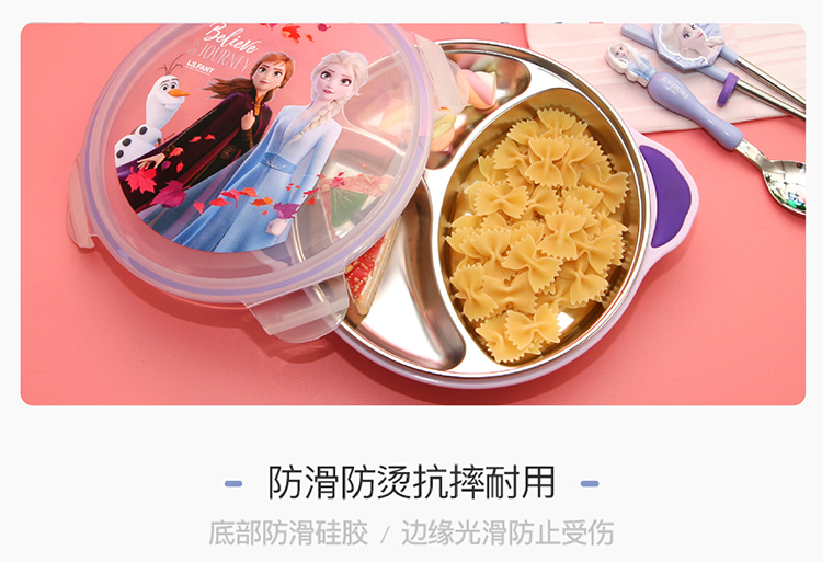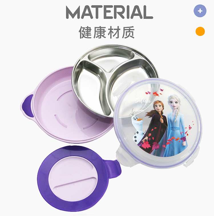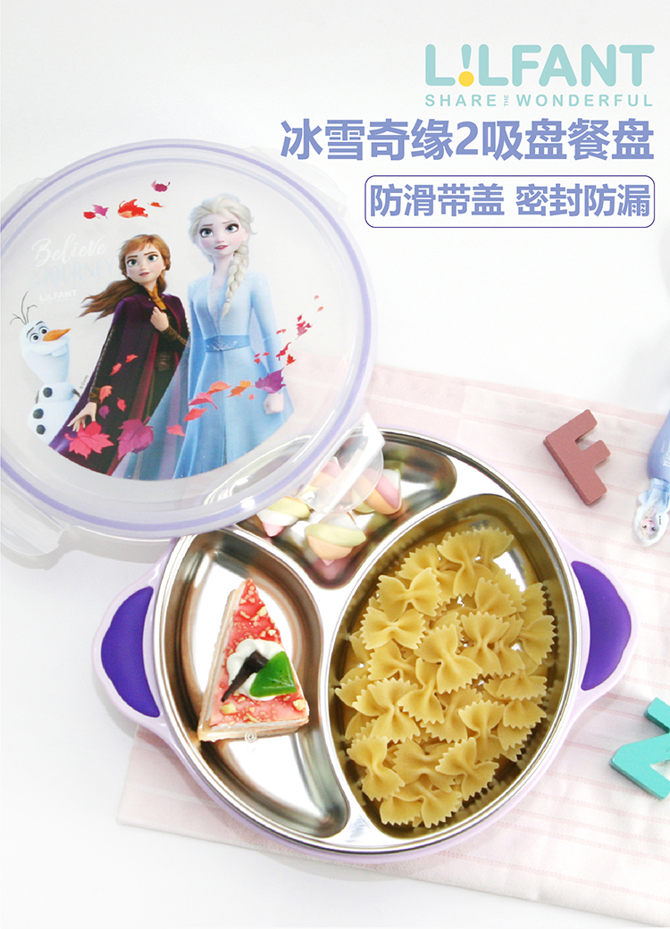 LILFANT利房 冰雪奇缘2防滑带盖不锈钢吸盘圆形餐盘FZII5941 紫色