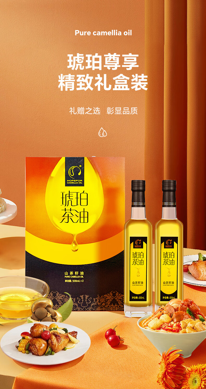 琥珀 500ml*2 尊享礼盒 山茶油 黄色(单位:盒)