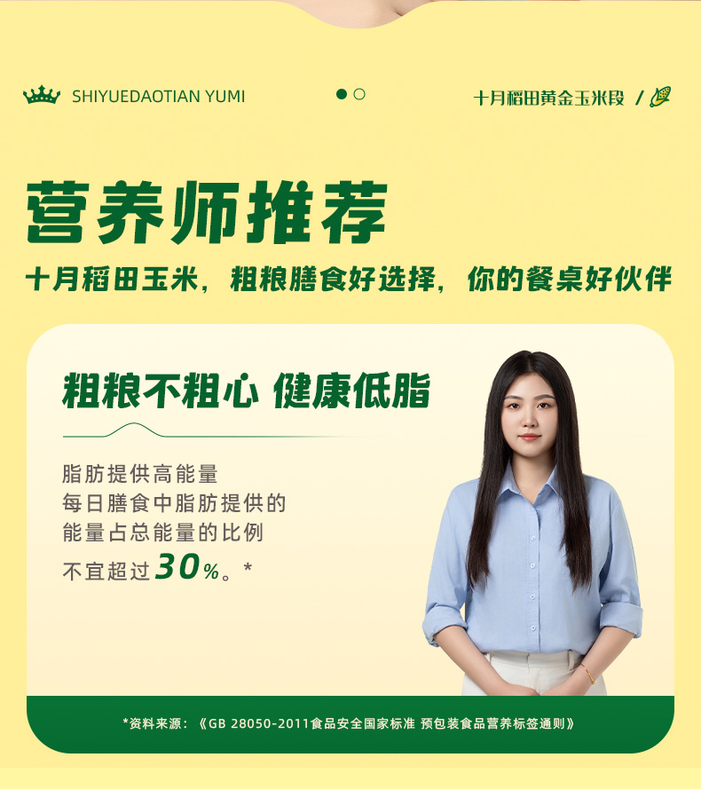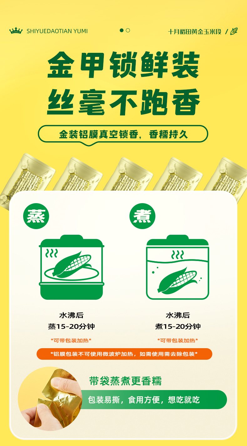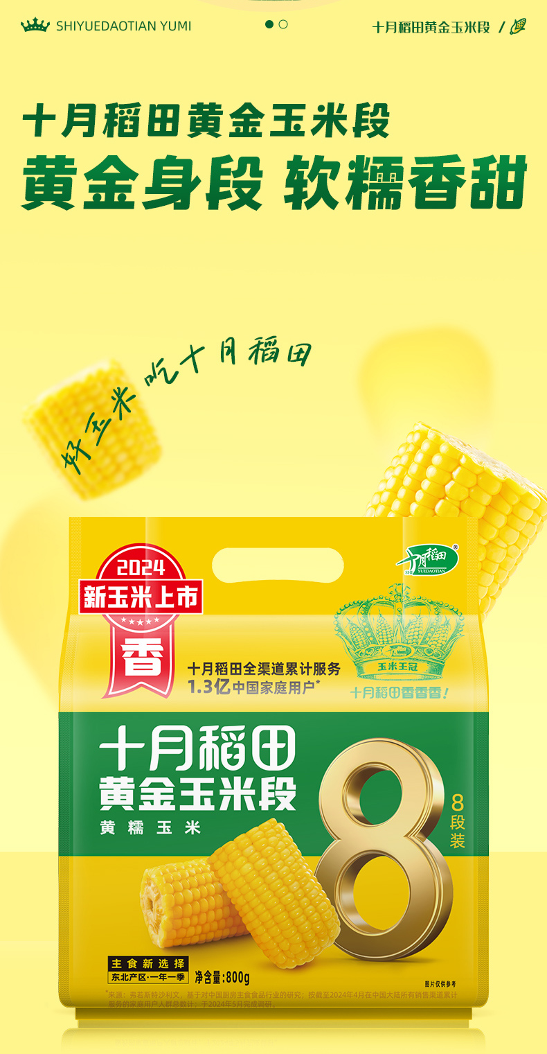 十月稻田 非即食黄金玉米段 黄糯玉米 80g*10小段 香槟金(单位:袋)