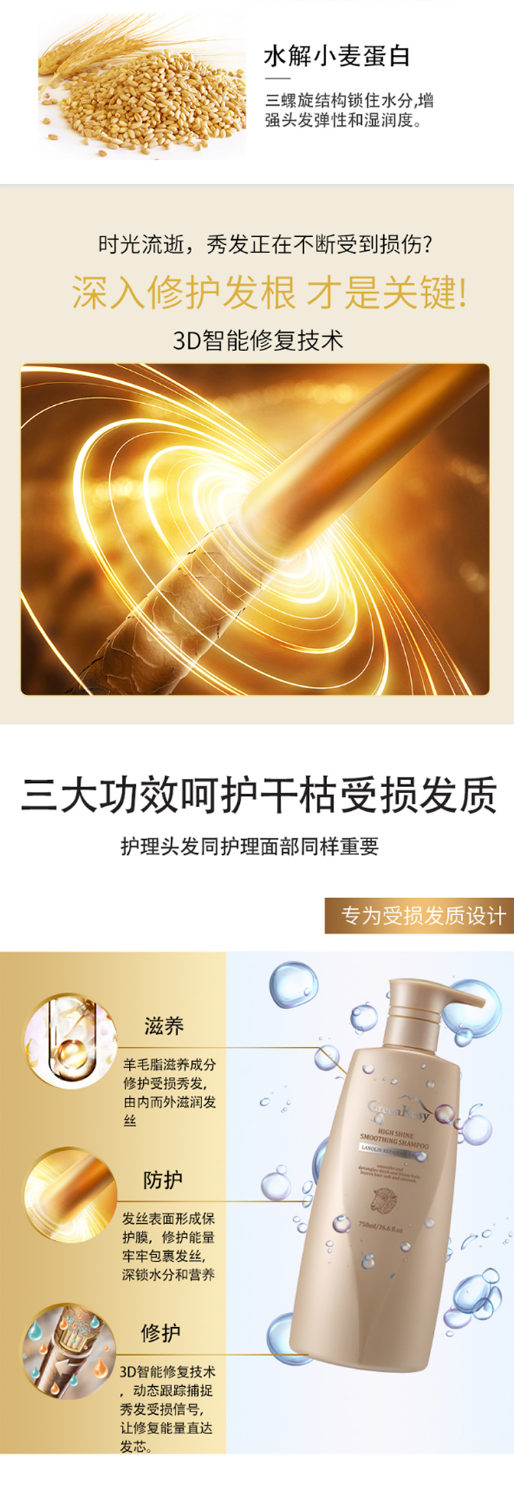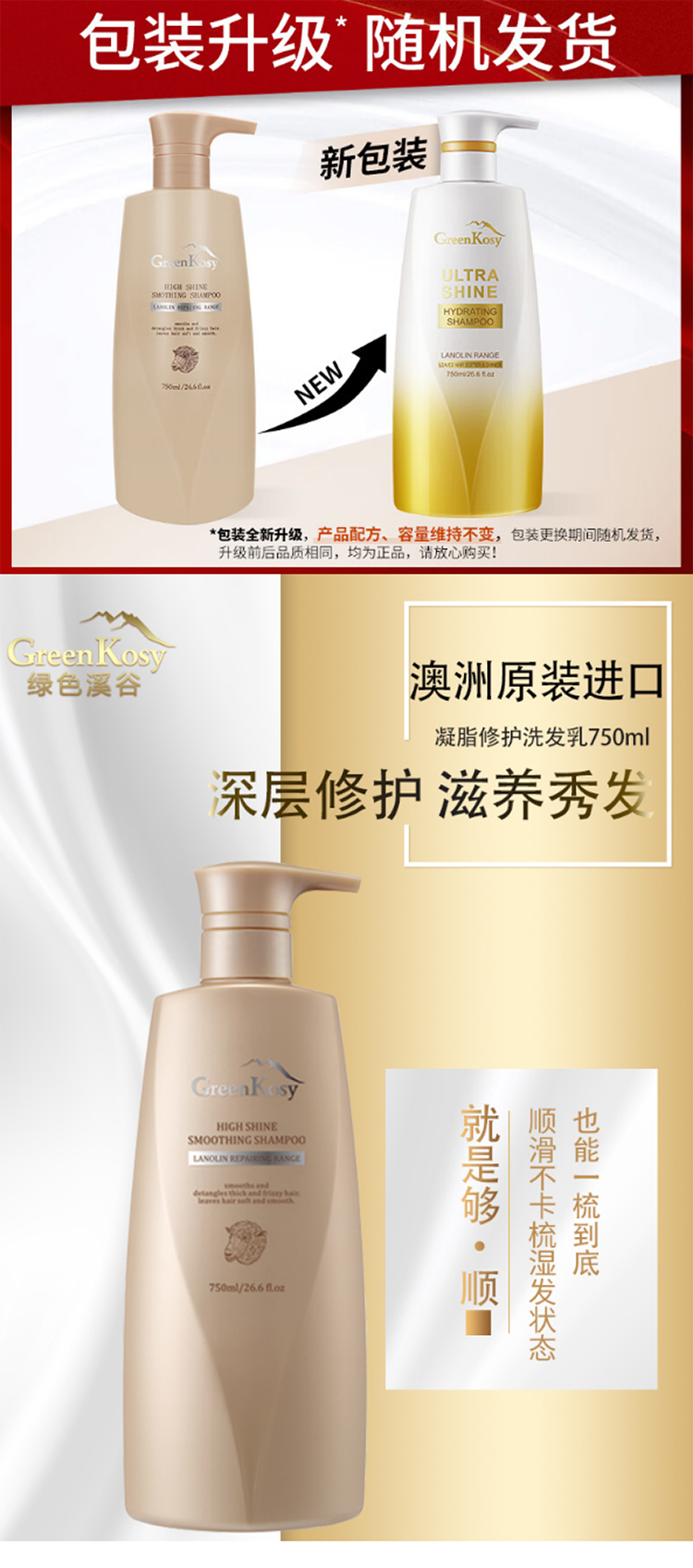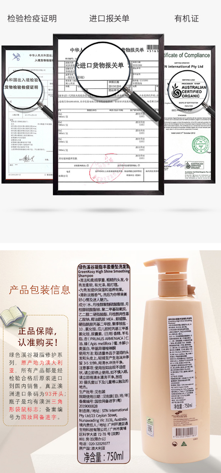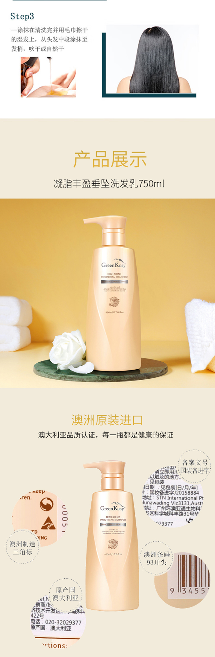 绿色溪谷(GREENKOSY) 凝脂丰盈垂坠 750ml 洗发水 香槟金(单位:瓶)