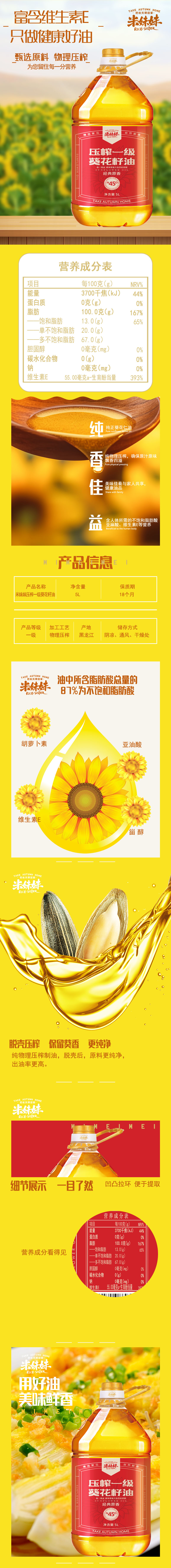 米妹妹(MIMEIMEI) Y003 5L 压榨一级葵花籽油 黄色(单位:桶)