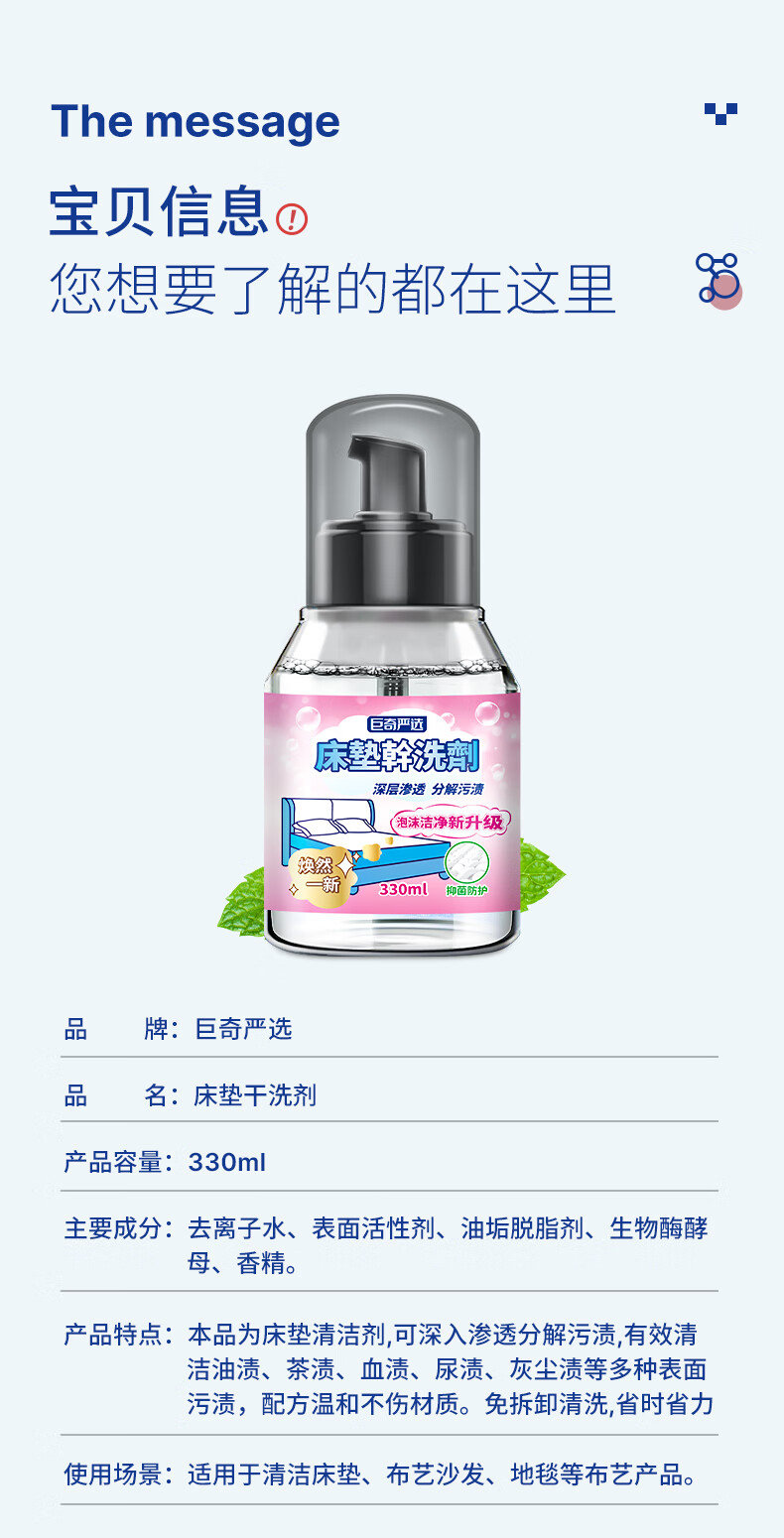 巨奇(JUQI) 床垫清洁剂 330ml*2瓶 干洗剂 粉色(单位:套)