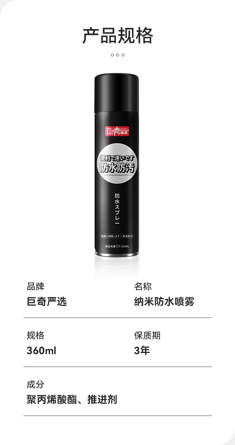 巨奇(JUQI) 防水喷雾 360ml 防污防尘防油 黑色(单位:瓶)
