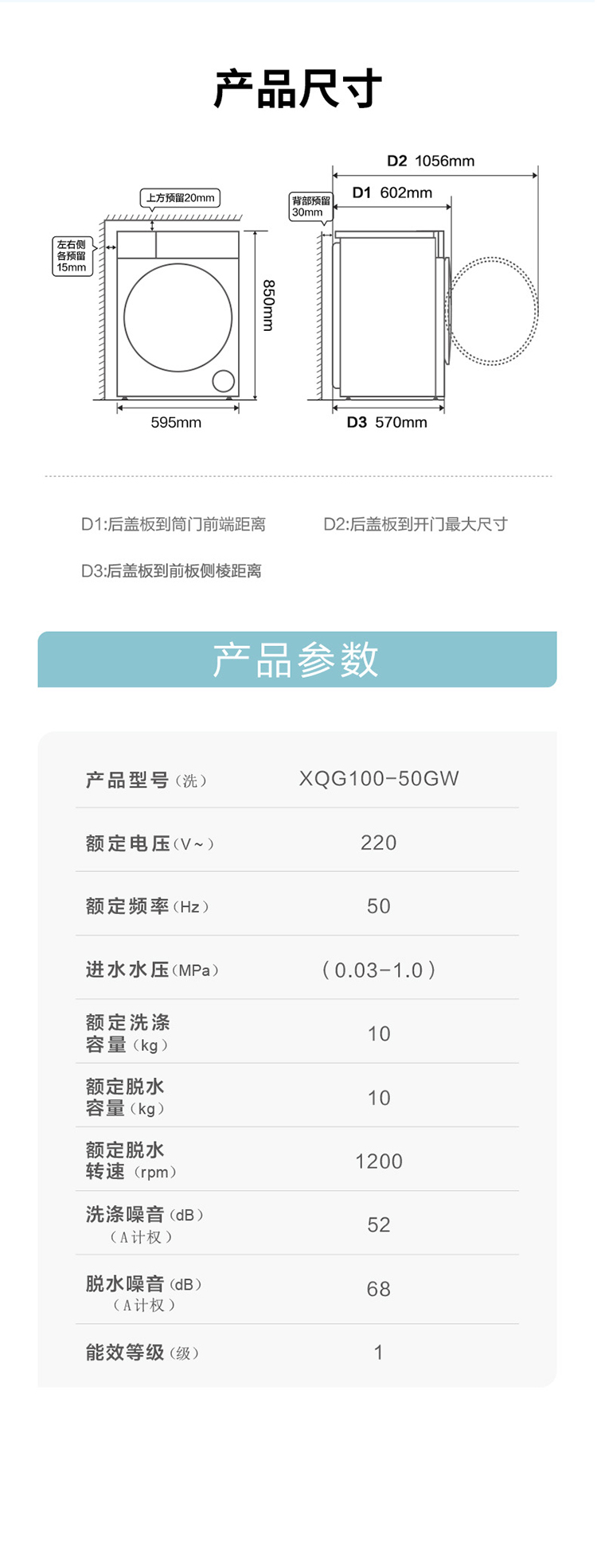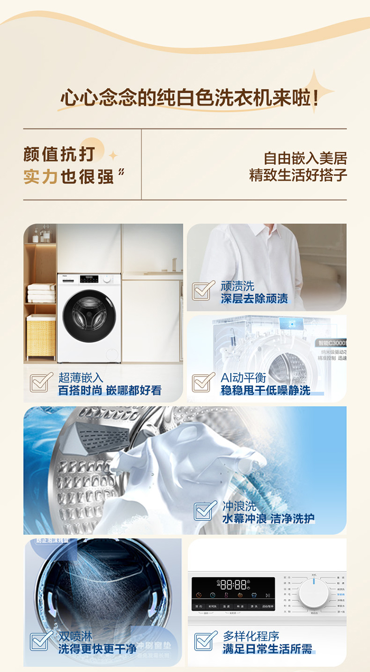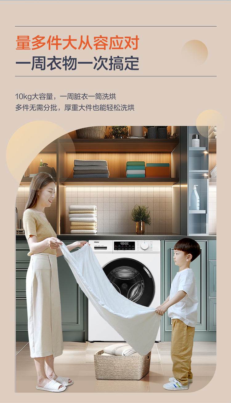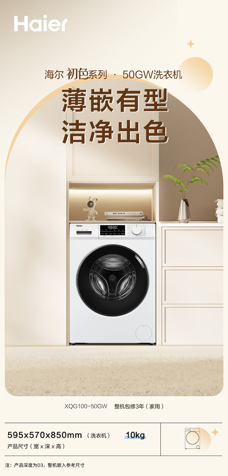 海尔(Haier) XQG100-50GW 10公斤 超薄双喷淋除菌高洗净 白色(单位:台)