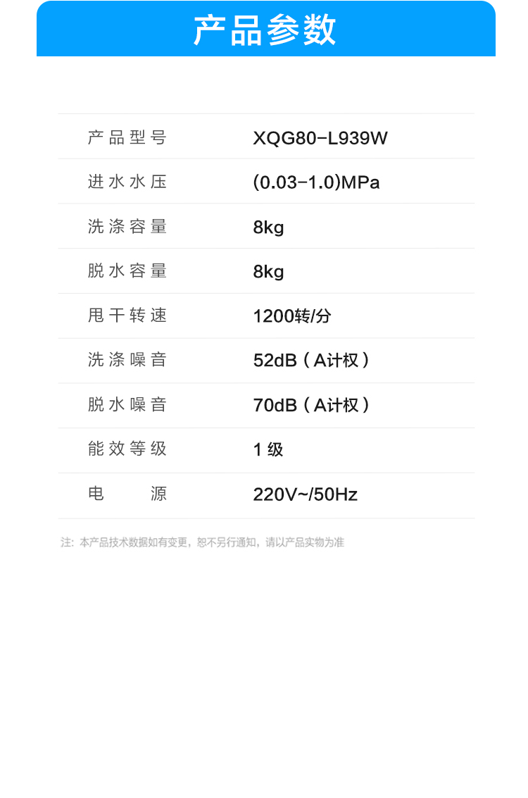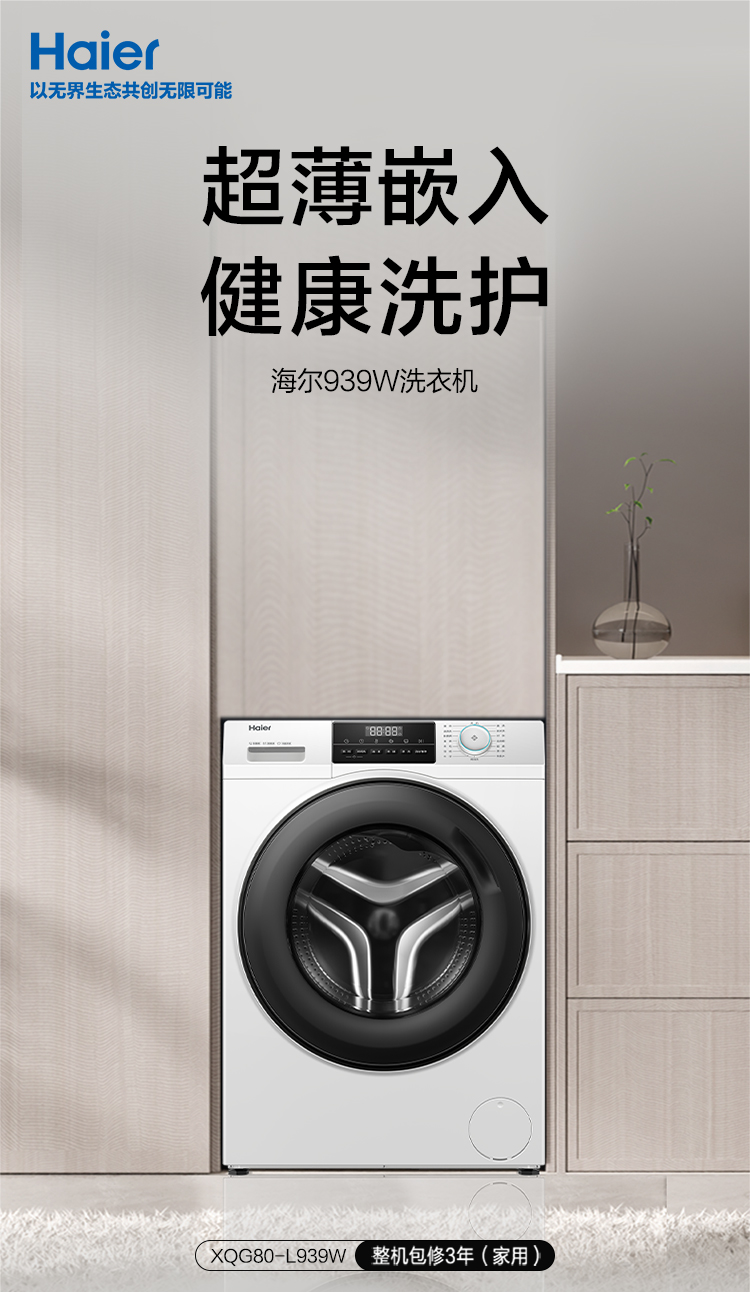 海尔(Haier) XQG80-L939W 8公斤 双喷淋除菌螨顽渍洗 8公斤 白色(单位:台)