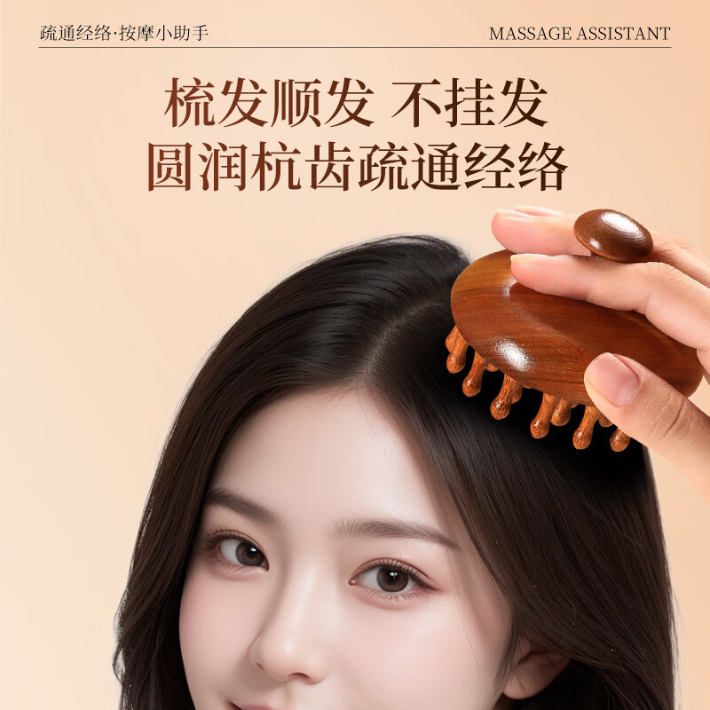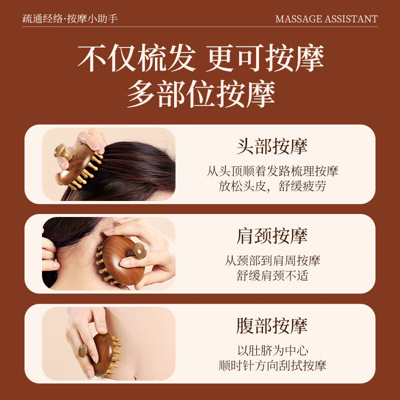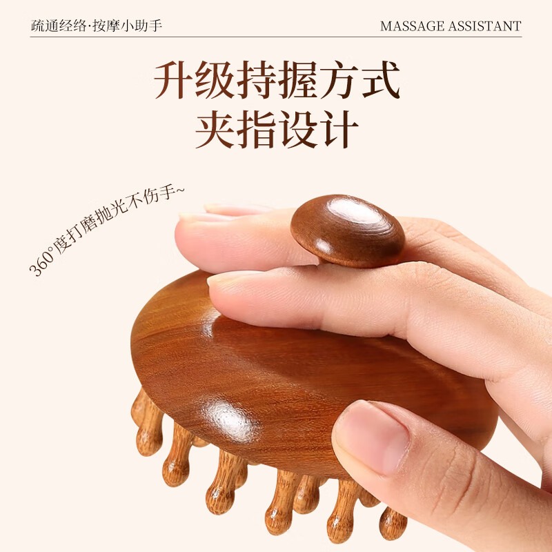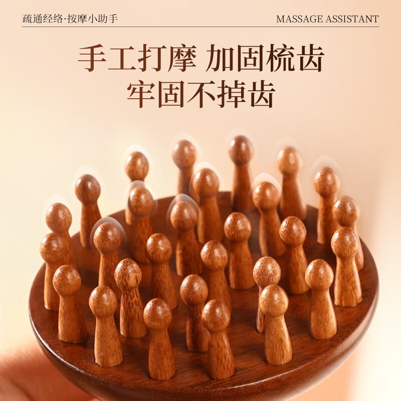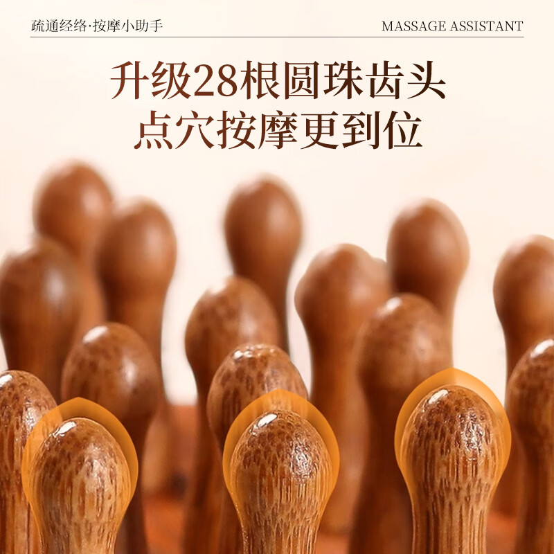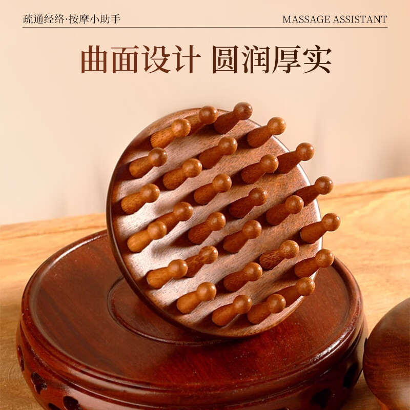 中稳堂 金丝檀木按摩梳圆盘 28齿 经络按摩 褐色(单位:个)