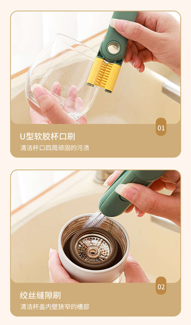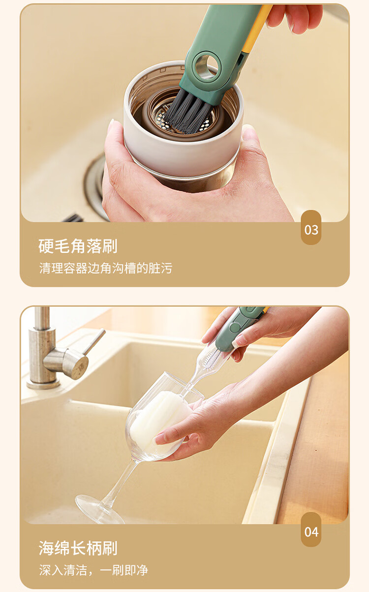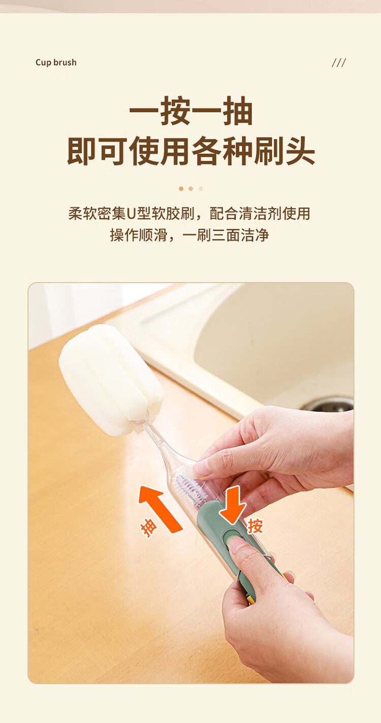 巨奇(JUQI) 长柄杯刷 五合一 清洗刷 绿色(单位:个)