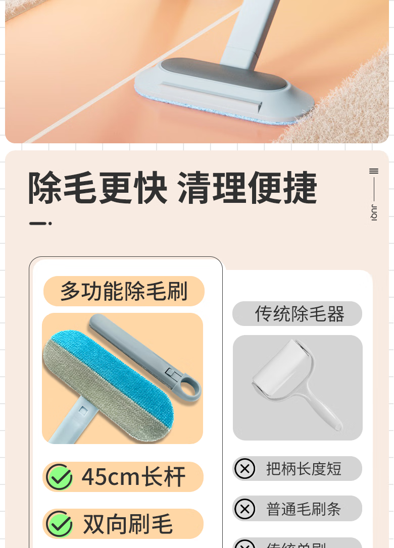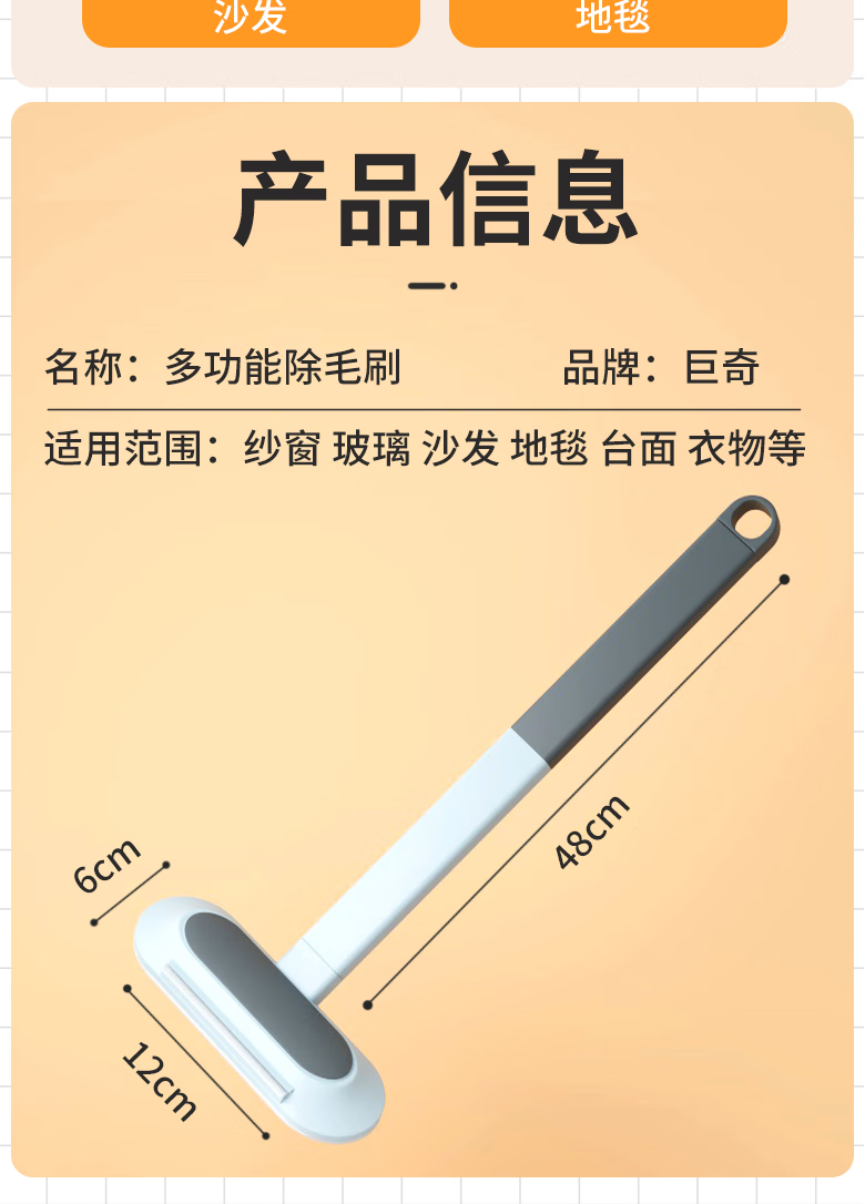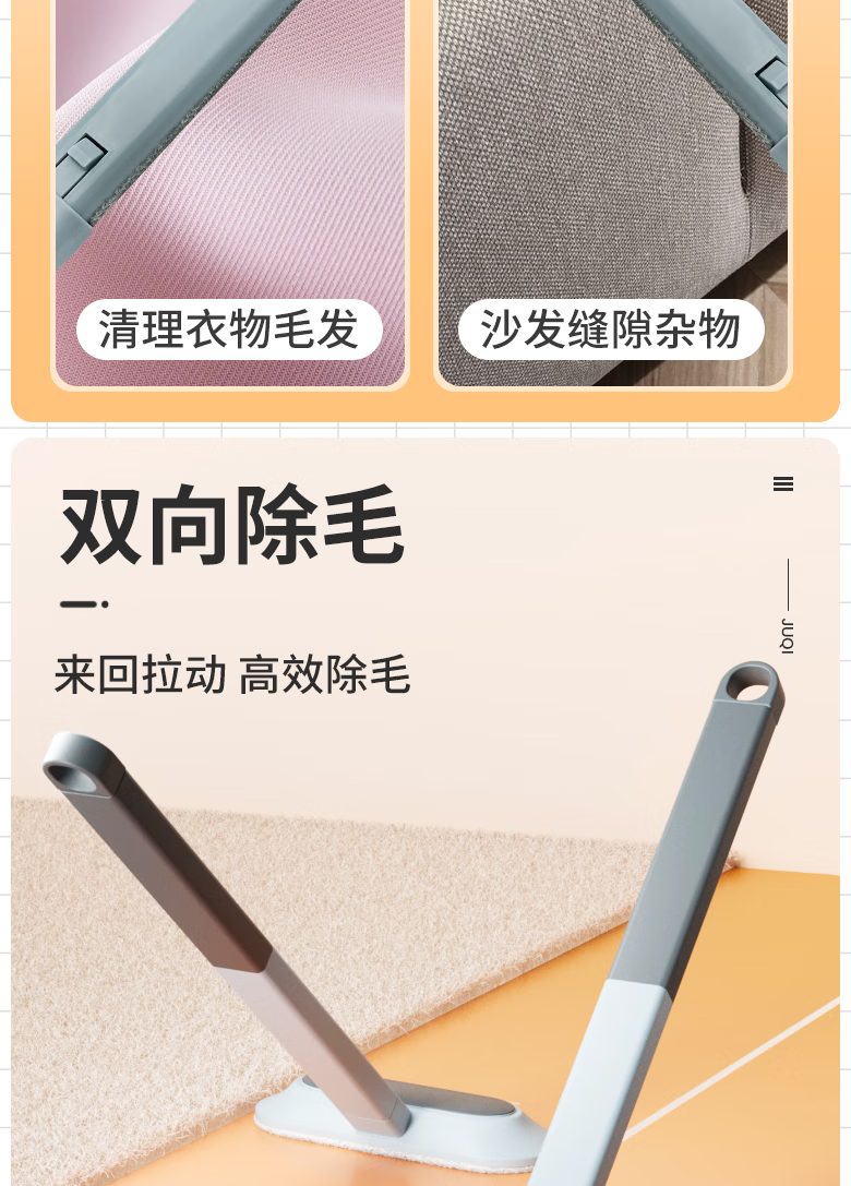 巨奇(JUQI) 长柄除毛刷 48CM 猫毛清理 灰色(单位:个)