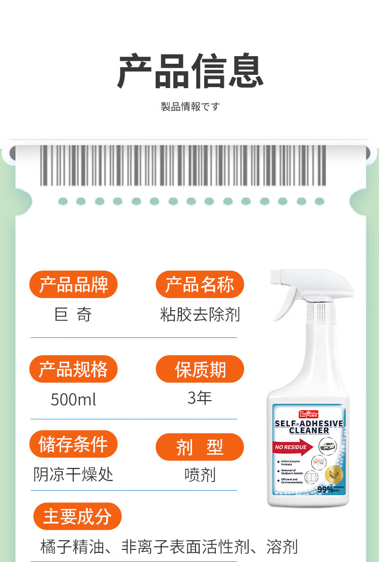巨奇(JUQI) 除胶宝 500ml*2瓶 胶痕去除 白色(单位:套)