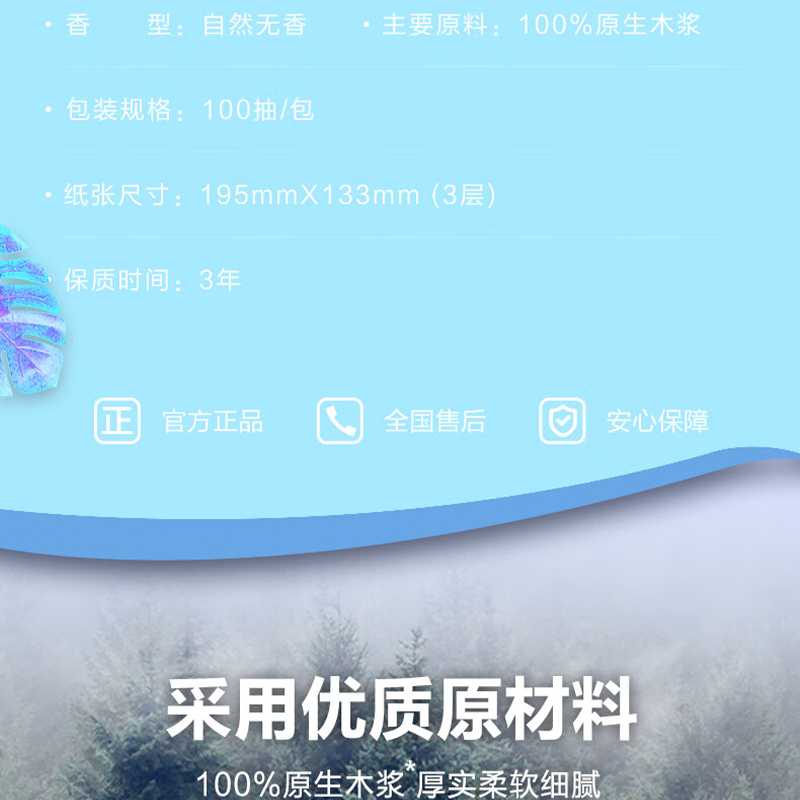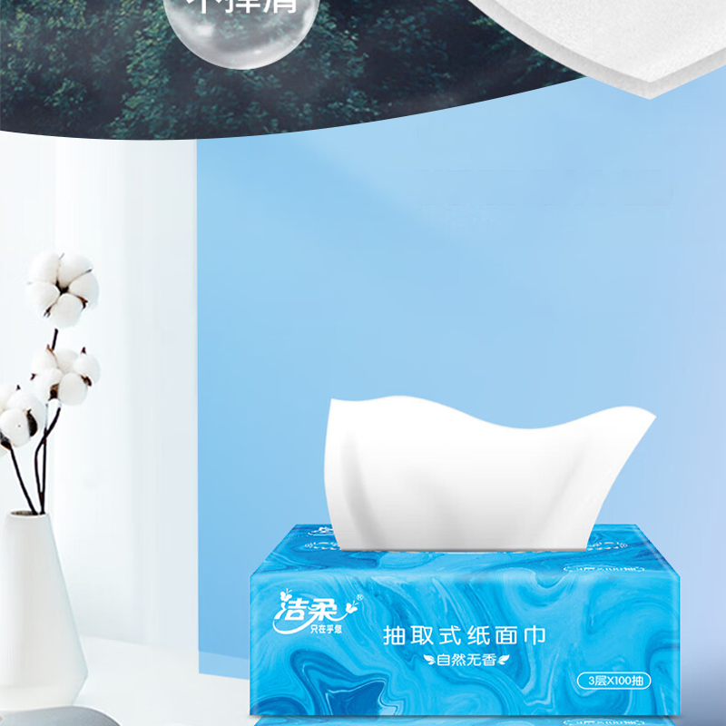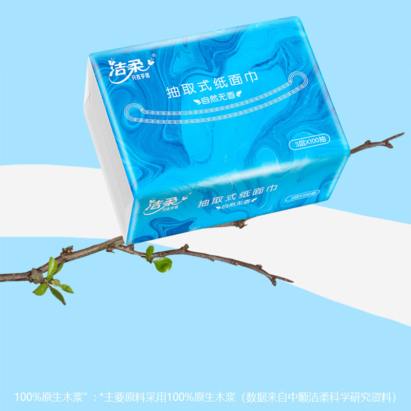 洁柔(C&S) 自然无香 三层100抽193x133mm*4包 抽纸100%原生木浆 蓝色(单位:提)