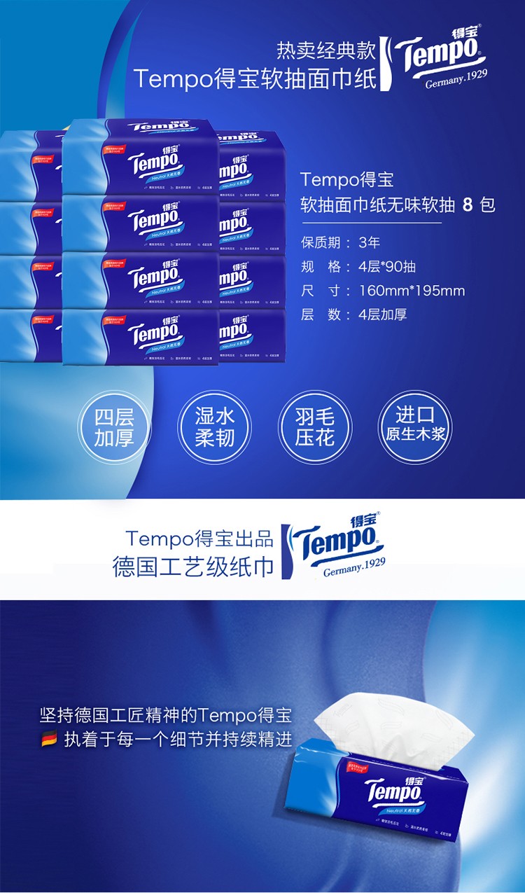得宝抽纸无香4层90抽8包T2367-08E-T(单位:提) 白色