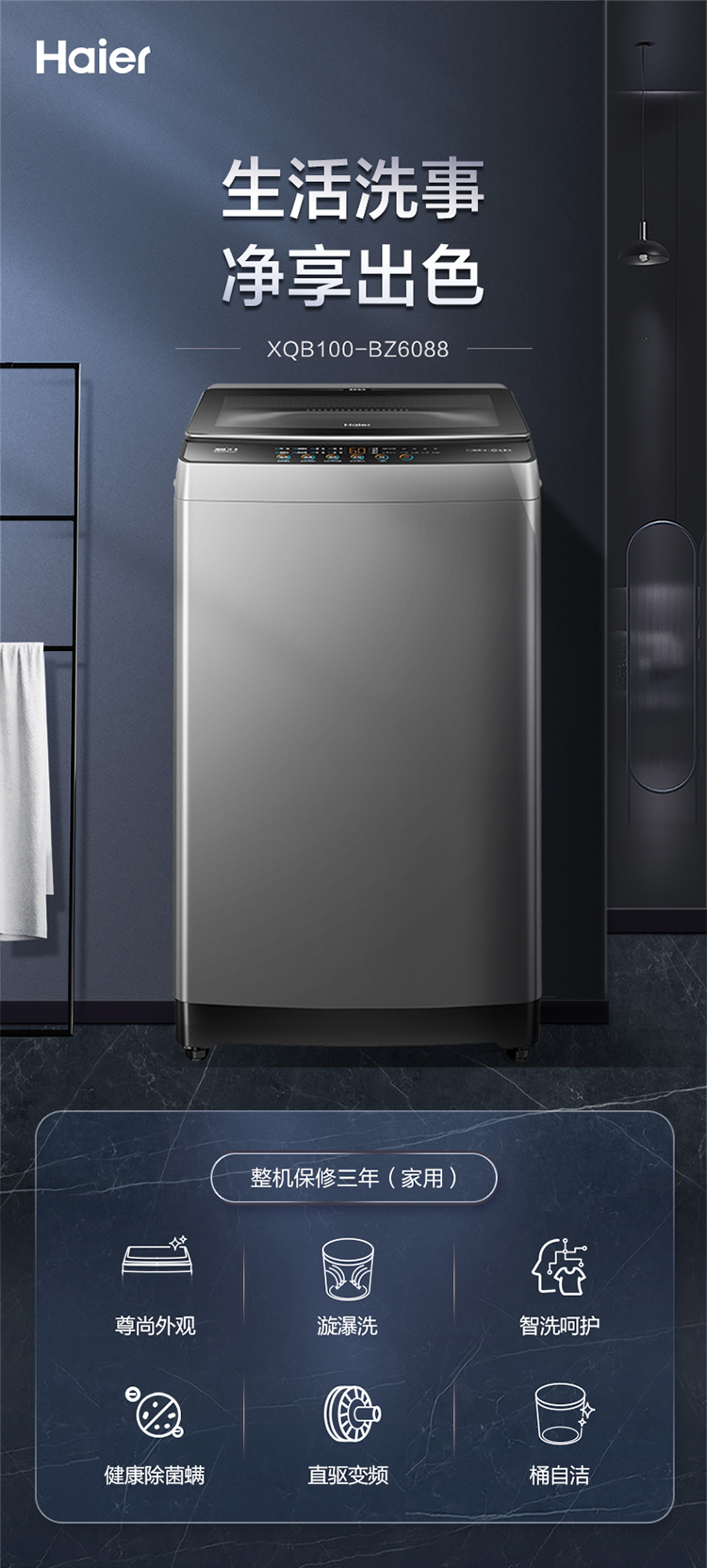 海尔(Haier) 洗衣机 一级变频波轮 XQB100-BZ6088 10KG 灰色(单位:台)