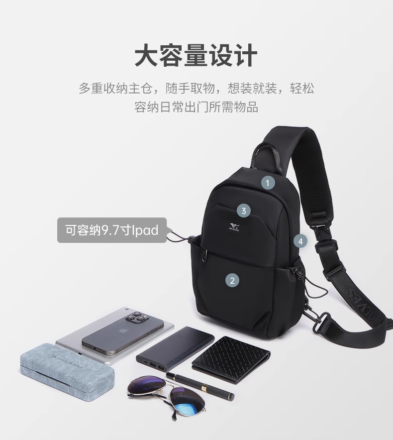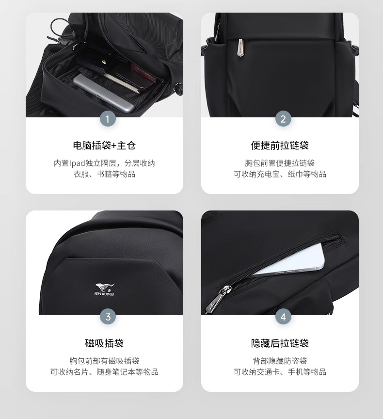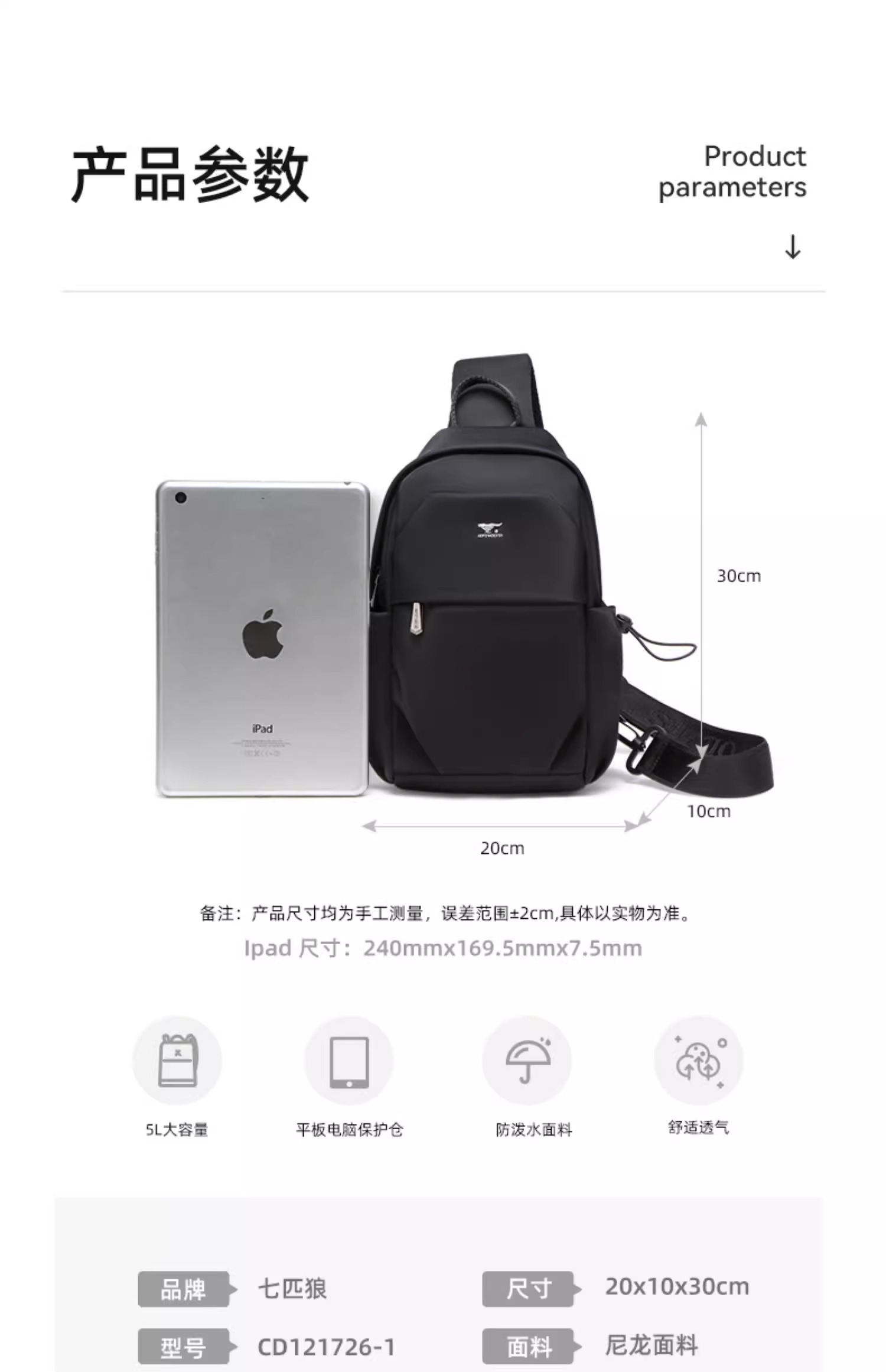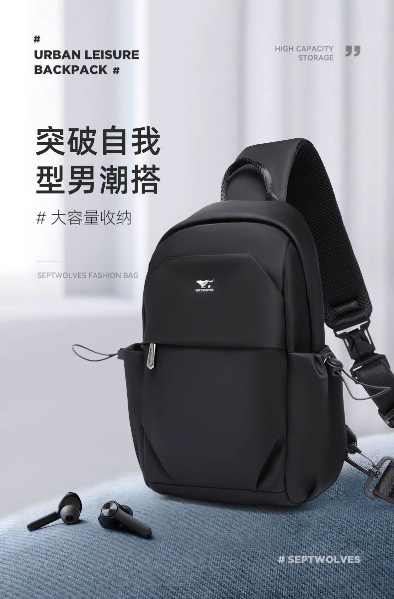 七匹狼(SEPTWOLVES) CD121726-1 200x100x300mm 男士休闲肩包 黑色(单位:个)