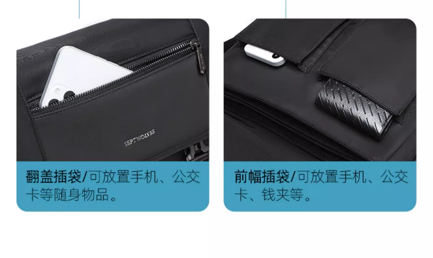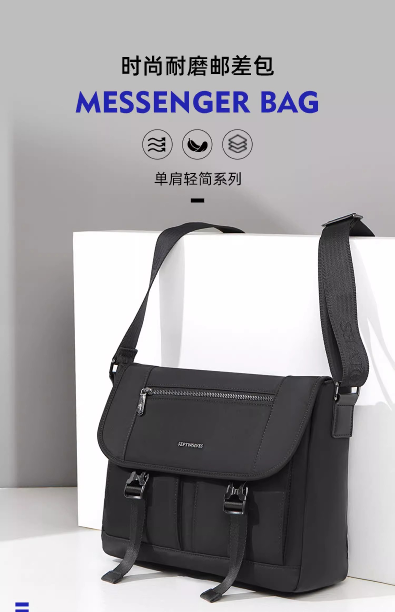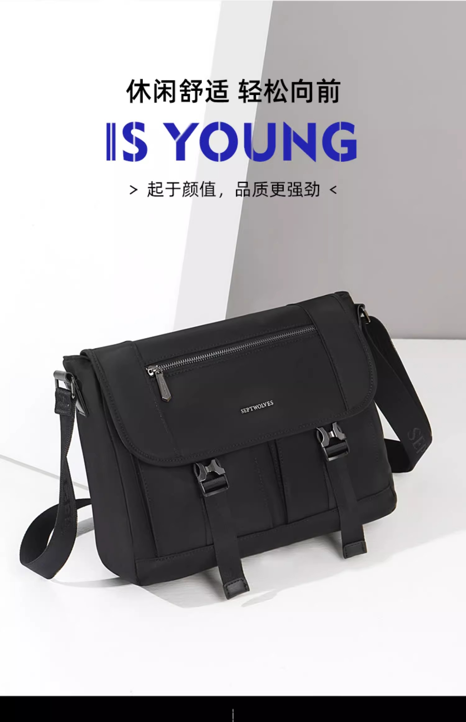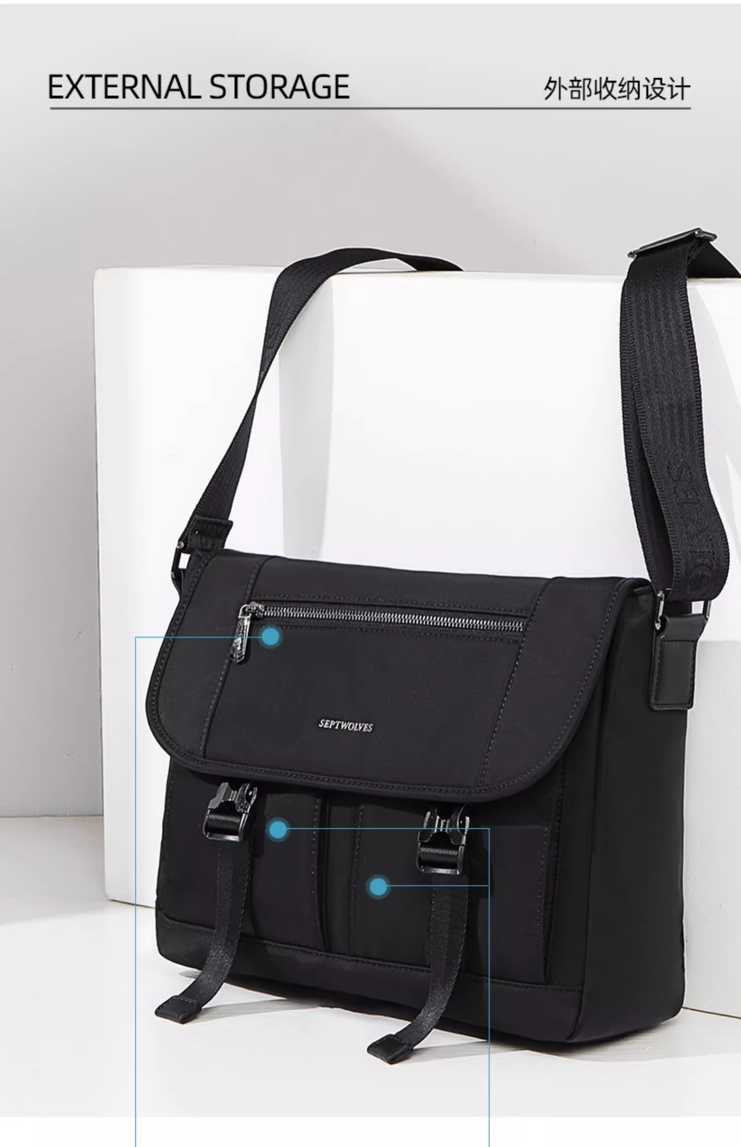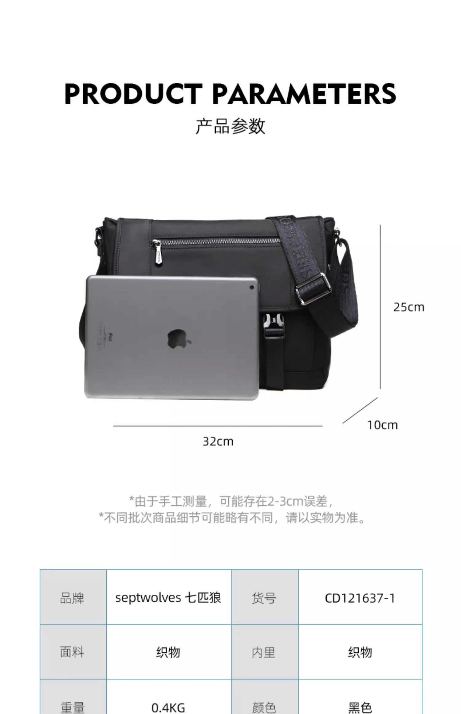 七匹狼(SEPTWOLVES) CD121637-1 320x100x250mm 男士休闲大容量斜跨包 黑色(单位:个)