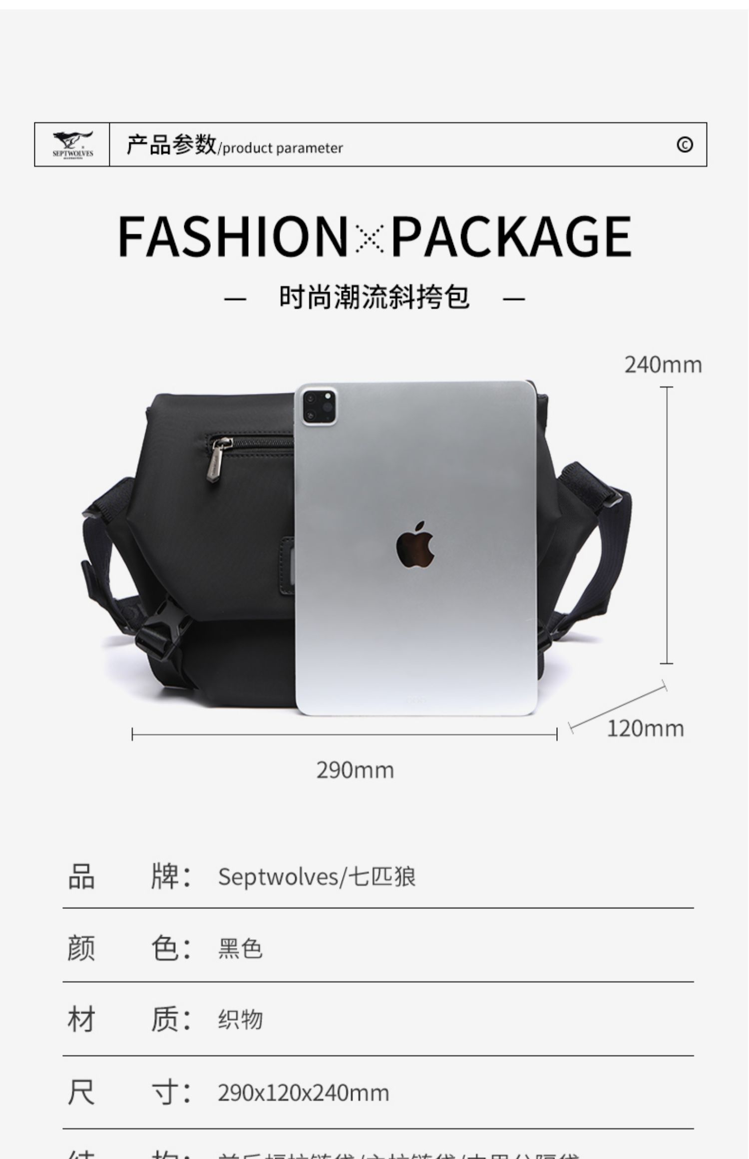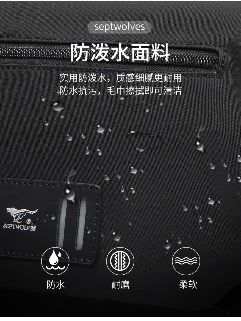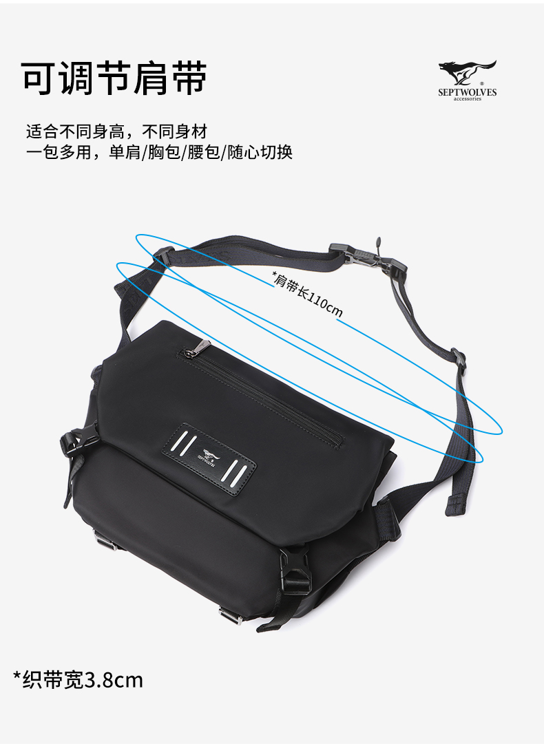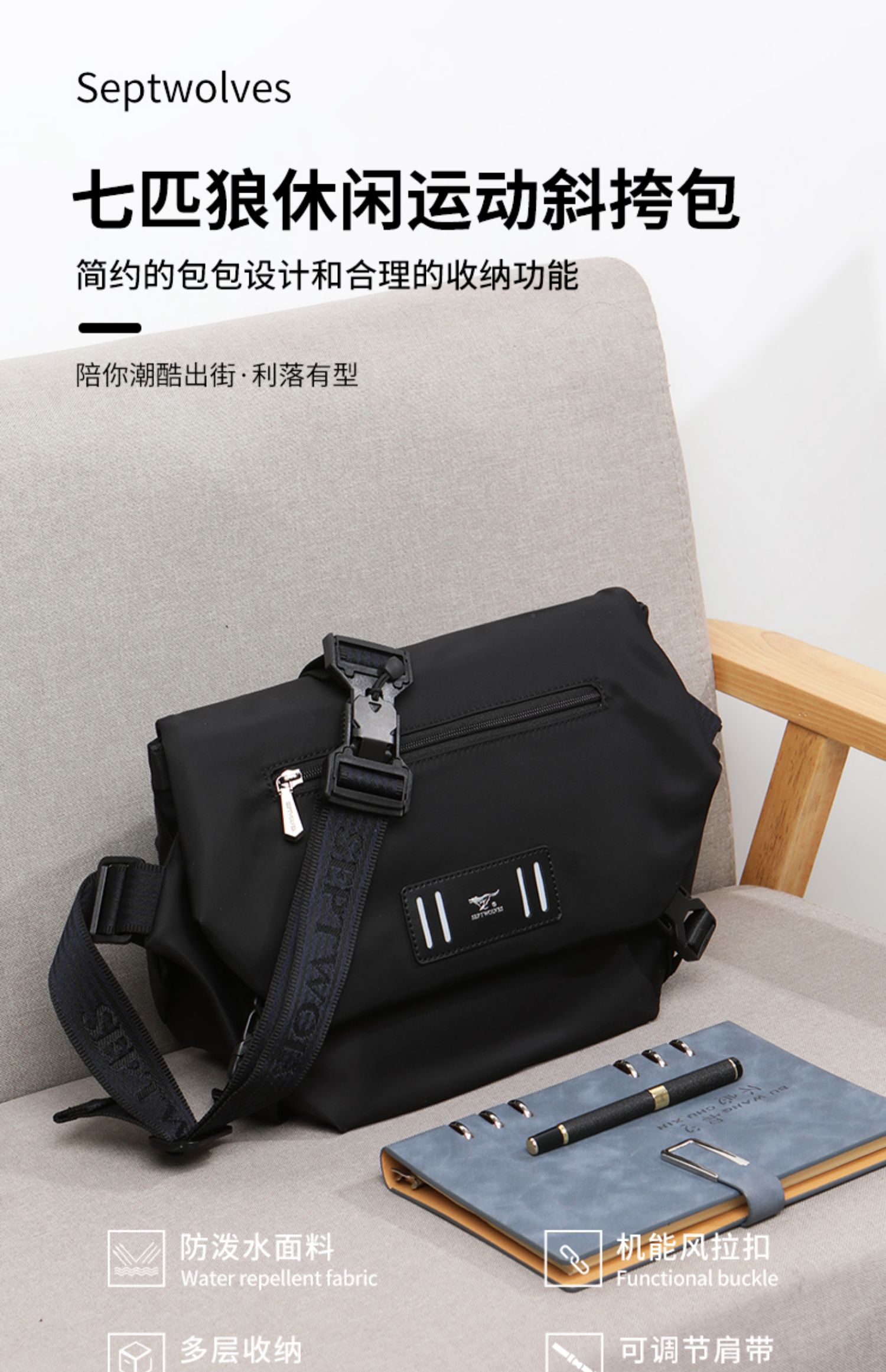 七匹狼(SEPTWOLVES) CD121654-2 290x120x240mm 斜挎男单肩包大容量包 黑色(单位:个)