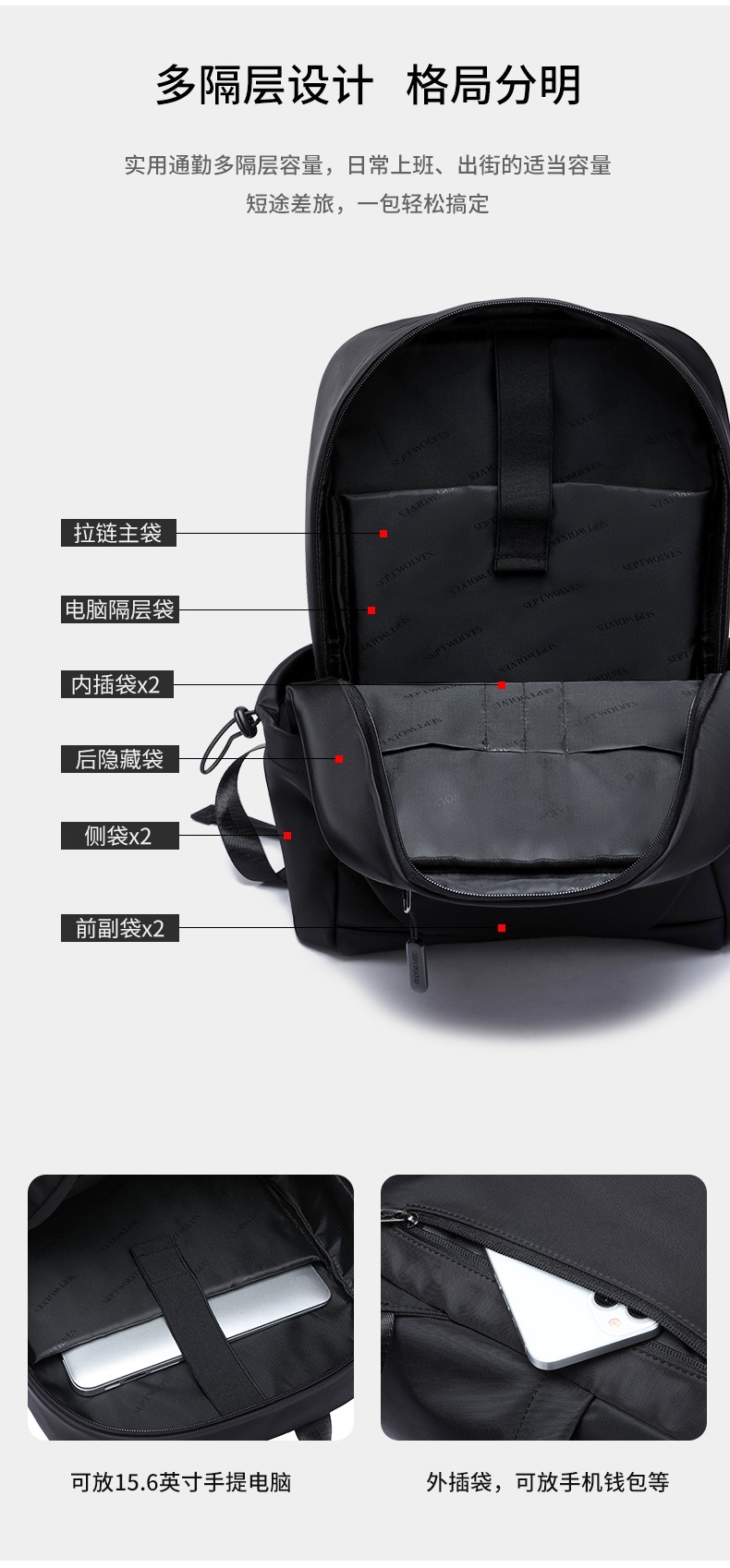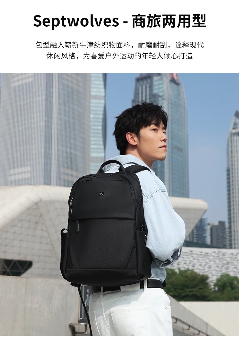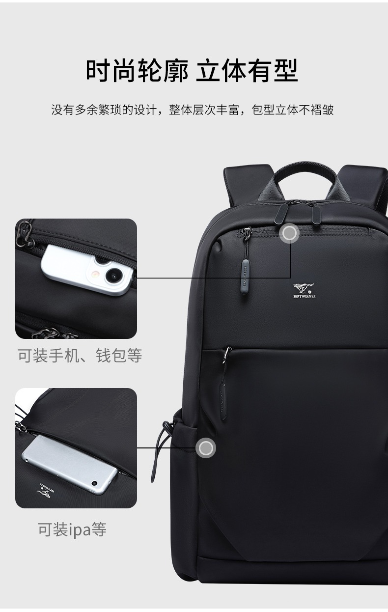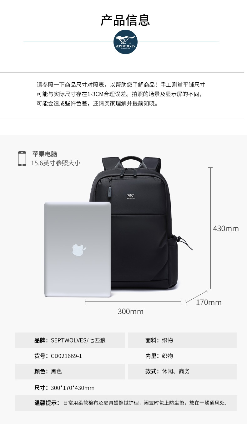 七匹狼(SEPTWOLVES) CD021669-1 300x170x430mm 双肩包男士休闲商务背 黑色(单位:个)