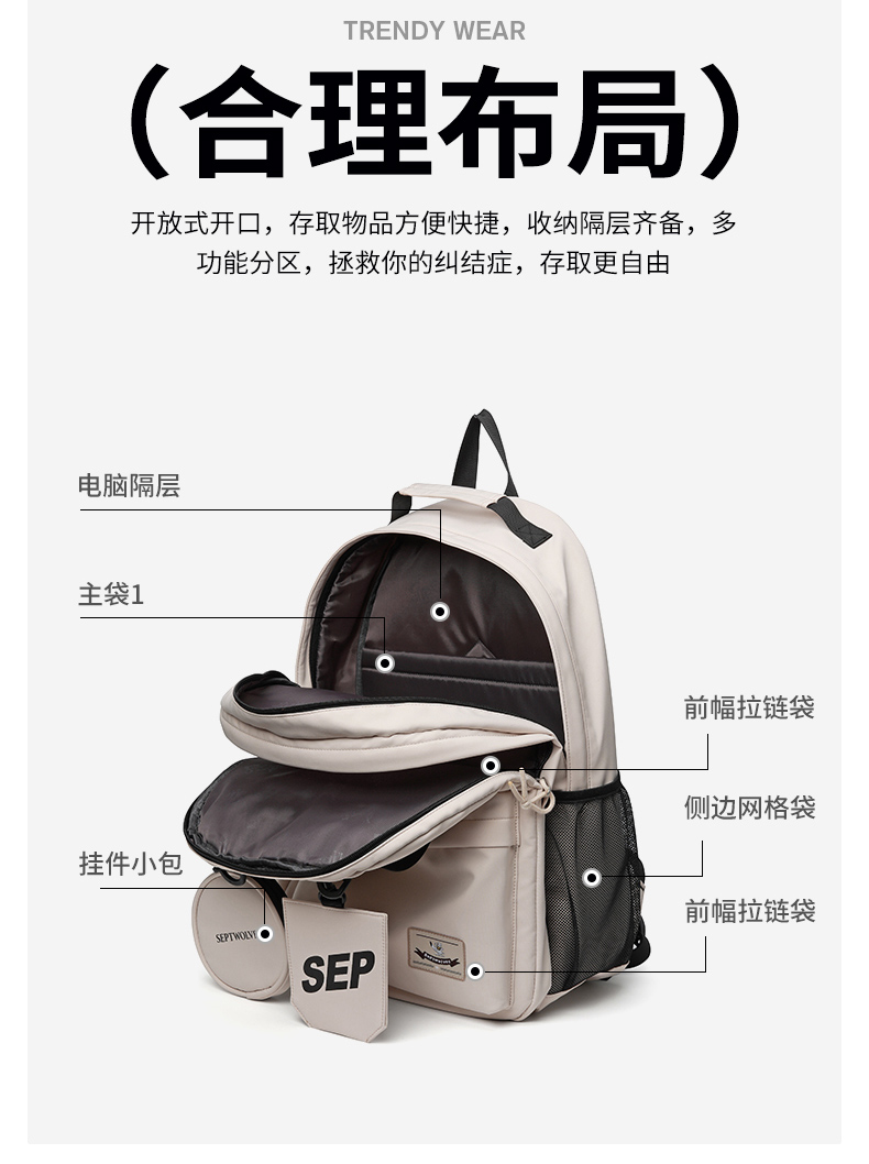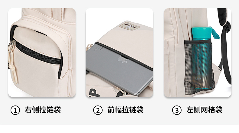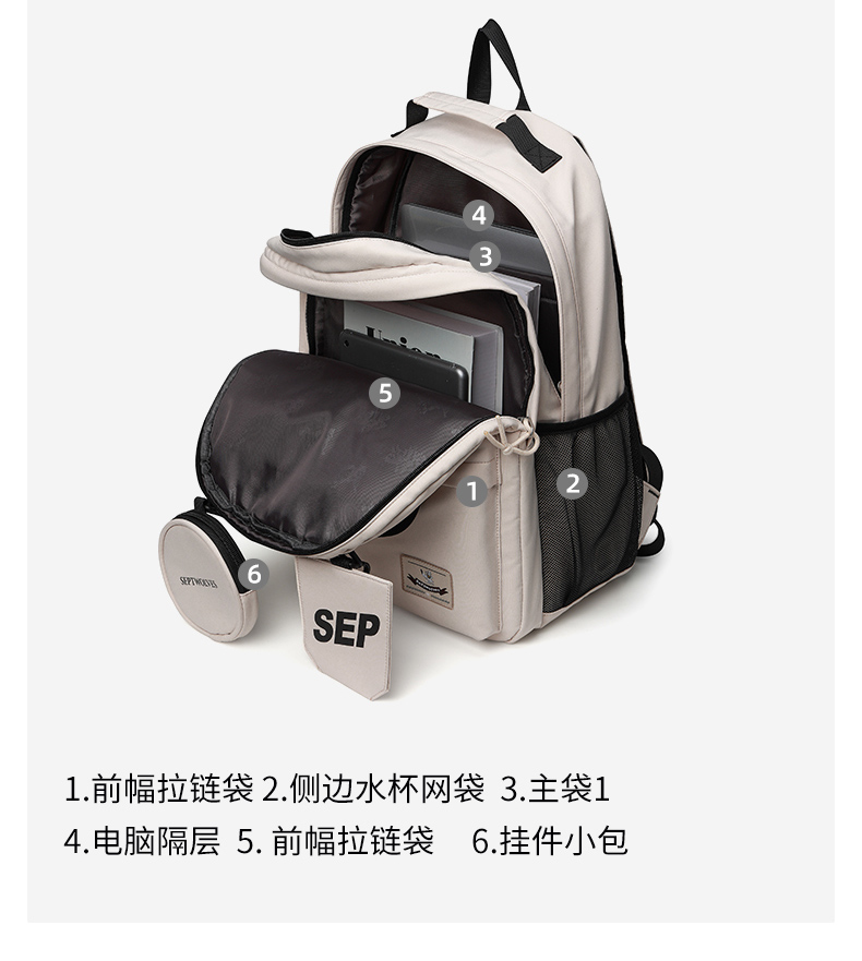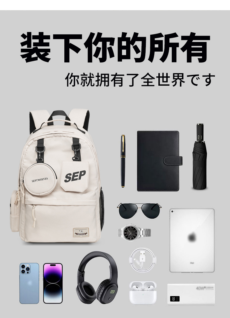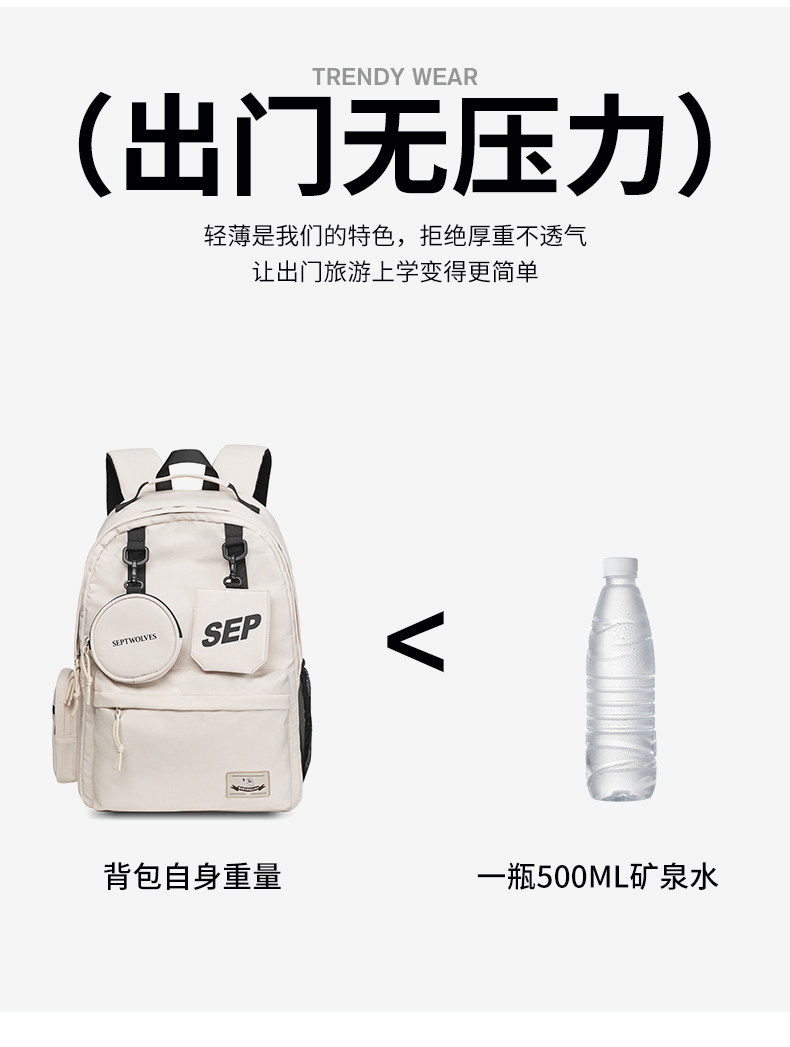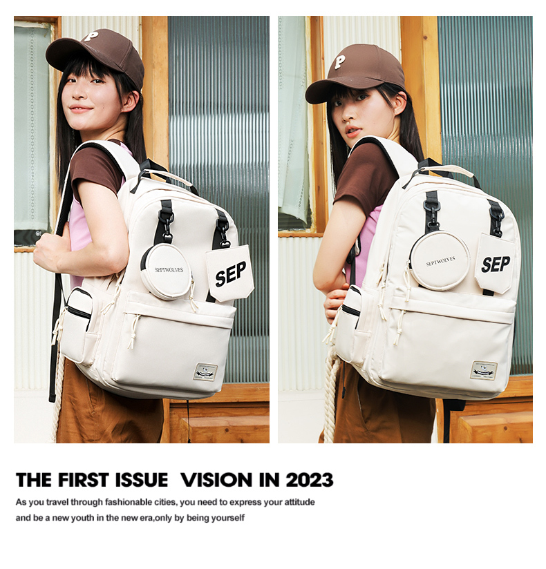 七匹狼(SEPTWOLVES) 双肩包女潮牌背包 CD031069-1 315x180x430mm 米白色(单位:个)