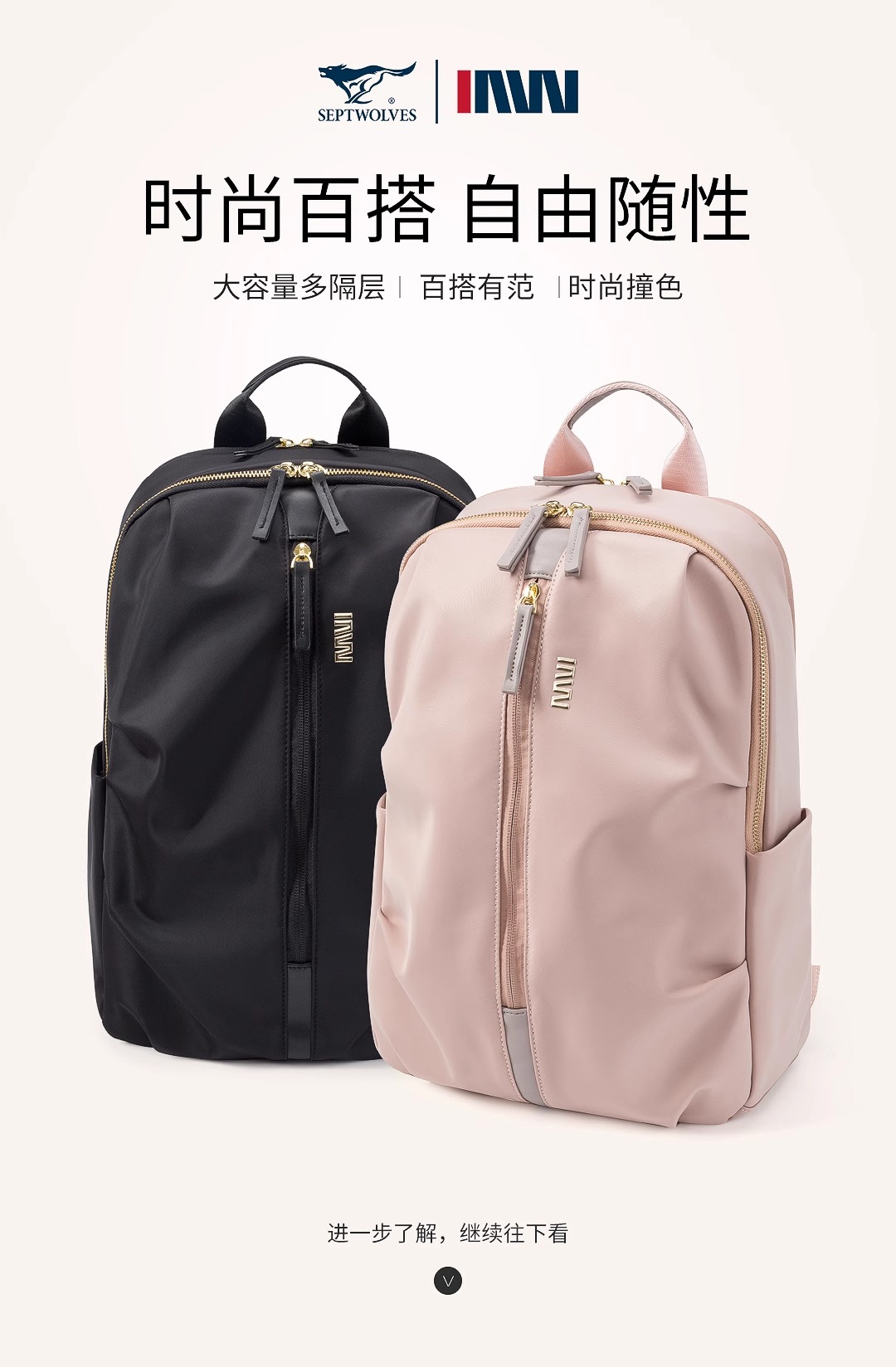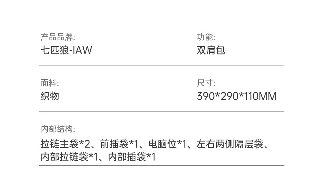 七匹狼(SEPTWOLVES) CA031111-2 390x290x110mm 双肩包出行大容量 粉色(单位:个)