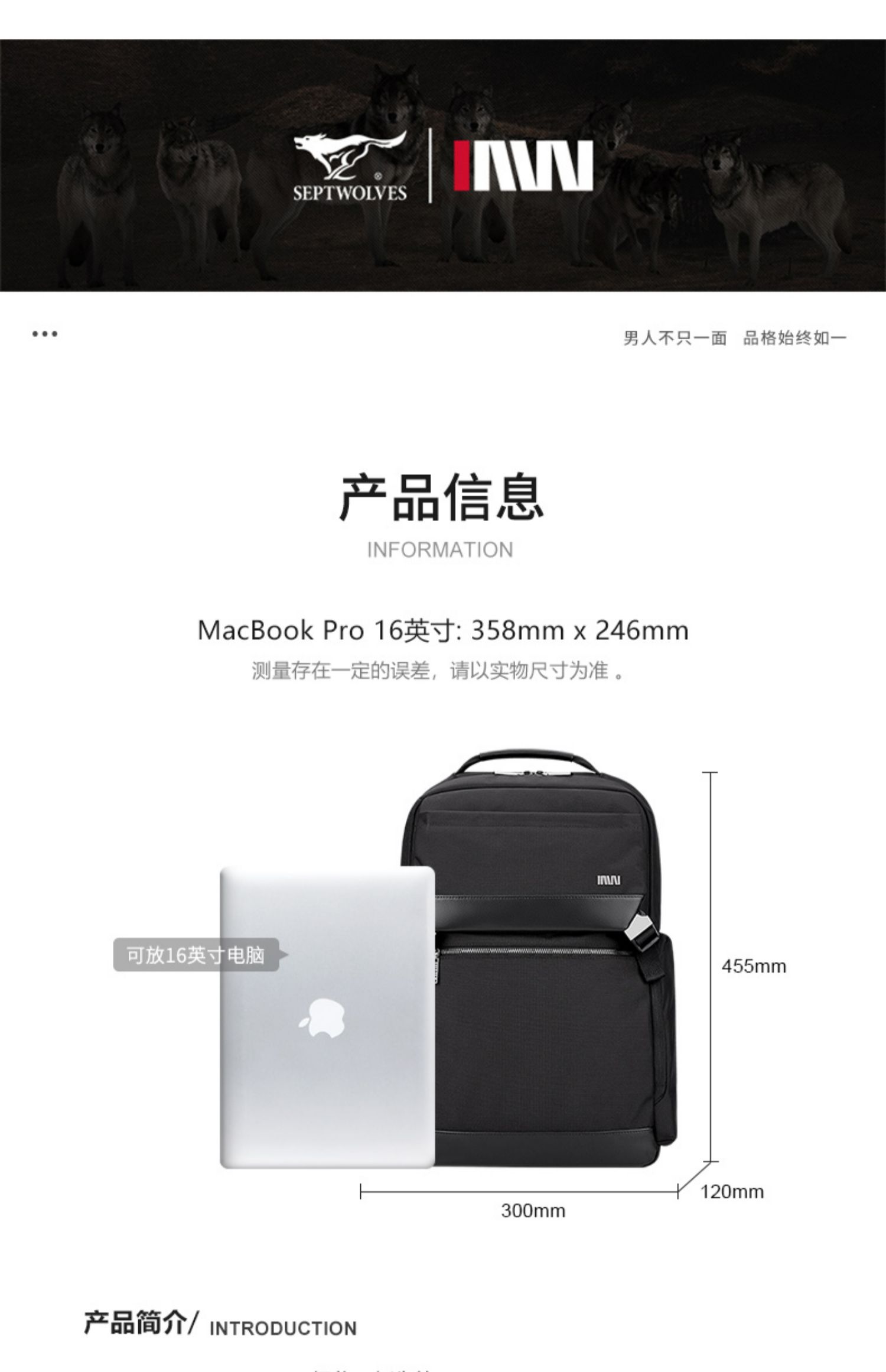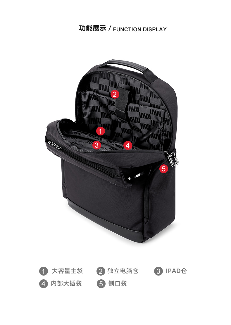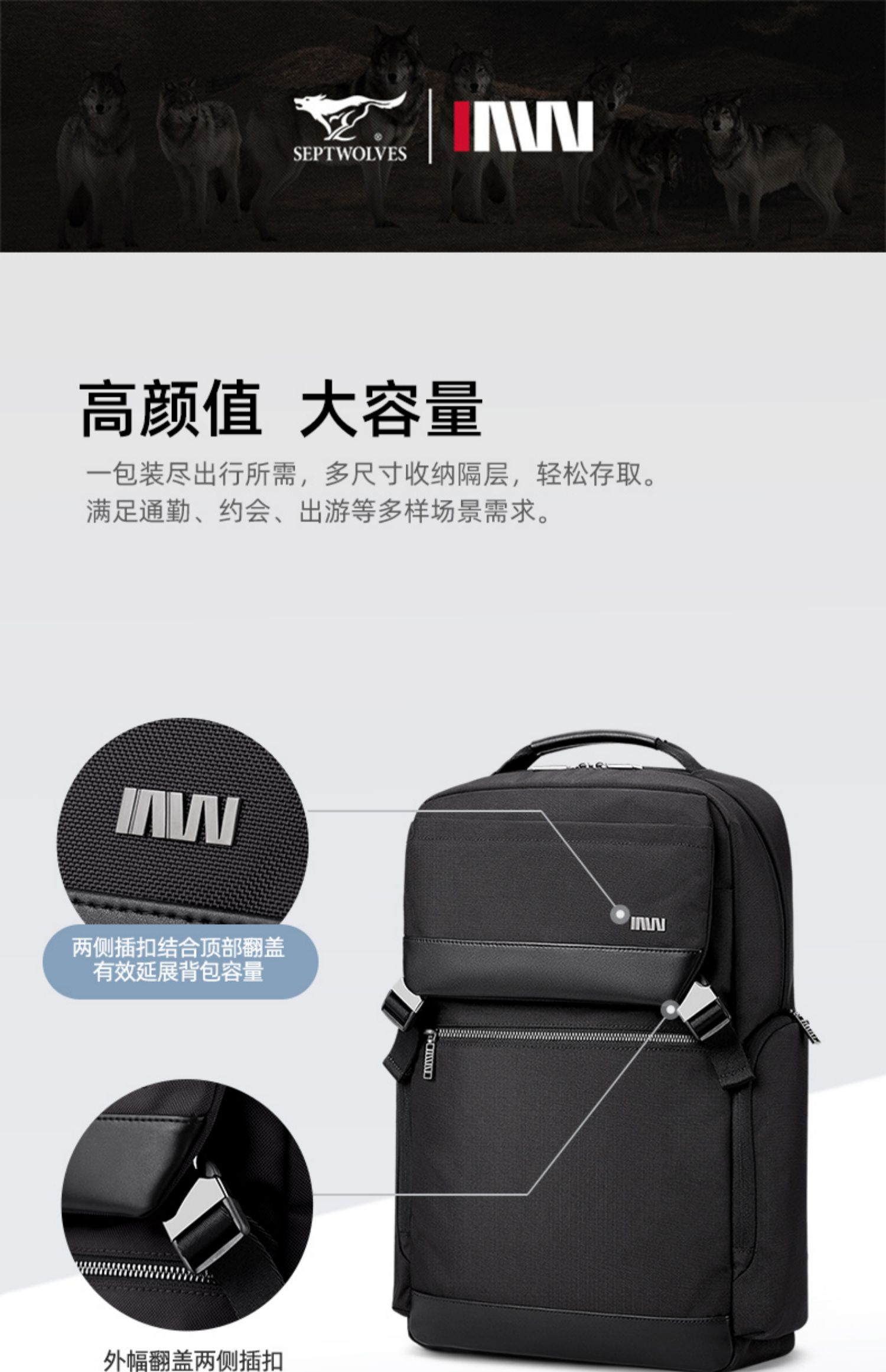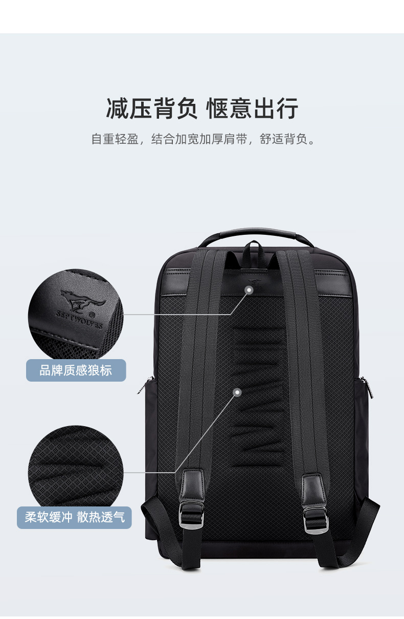 七匹狼(SEPTWOLVES) 双肩包休闲大容量背包 CA021747-1 300x120x455mm 黑色(单位:个)